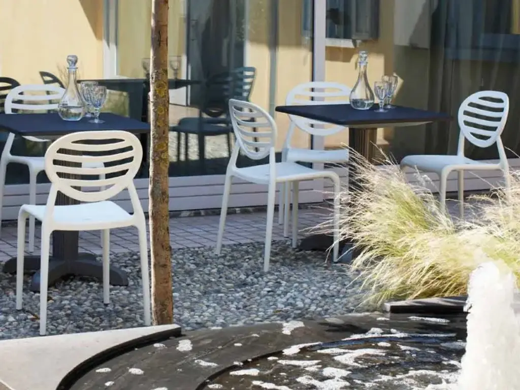 TOP GIO is a stackable chair with air moulded polypropylene frame reinforced with fibreglass. For indoor/outdoor use. PURCHASE INFORMATION : Price includes 6 pcs. with the same configuration.