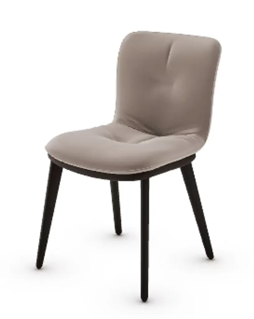 Range of seats with many solution of backrest. The seat is made with elastic webbing and non-deformable polyurethane foam with different densities. The back is made with upholstered plywood. The frame can be with conic solid beech-wood legs laquered or stained on request or with powder-coated round steel legs. The covering can be in different materials and colors.Soft and gentle shake to animate the space. TREND is a range of seats with a simple structure but with clear and well defined connotation. The different colors, the various finishes and the different base variants are details that make each chair an object of great personality.
