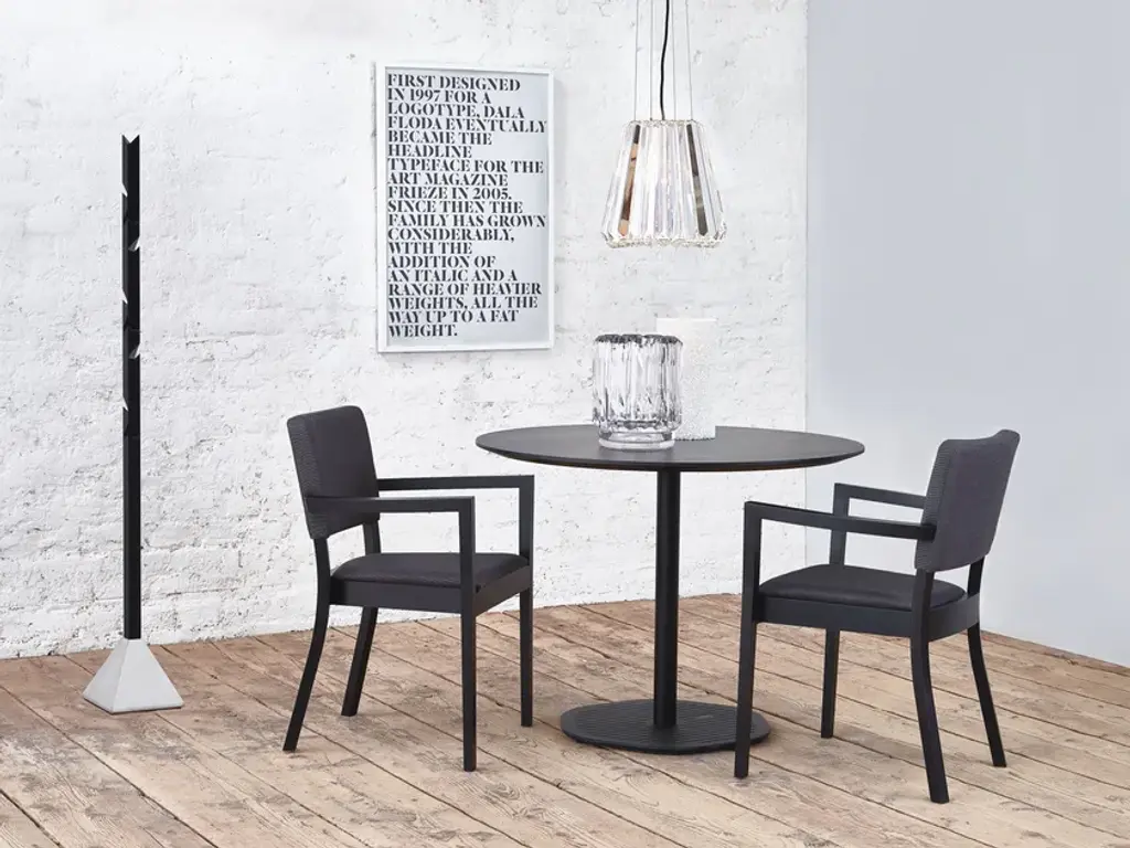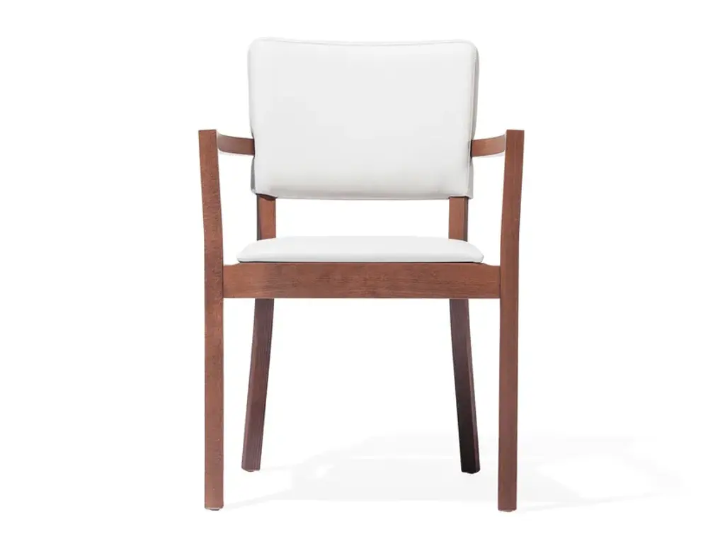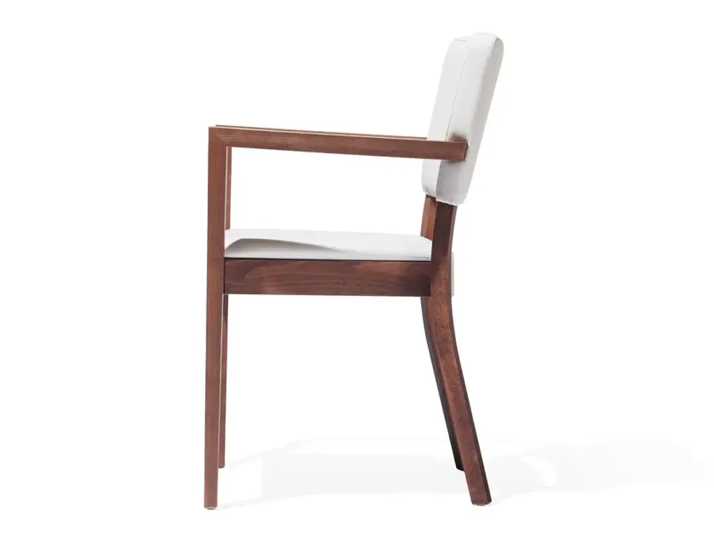 Wooden chair with seat and back upholstered in fabric and with armrests from the TREVISO collection by TON.TREVISO is a stackable wooden chair with or without armrests, padded and covered in fabric. Available in different color variations. Simple and comfortable shapes. The Treviso chair is composed of a padded rectangular back, a quadrangular seat and slightly bent legs. Thanks to a large choice of coatings it can provide numerous options for any interior.