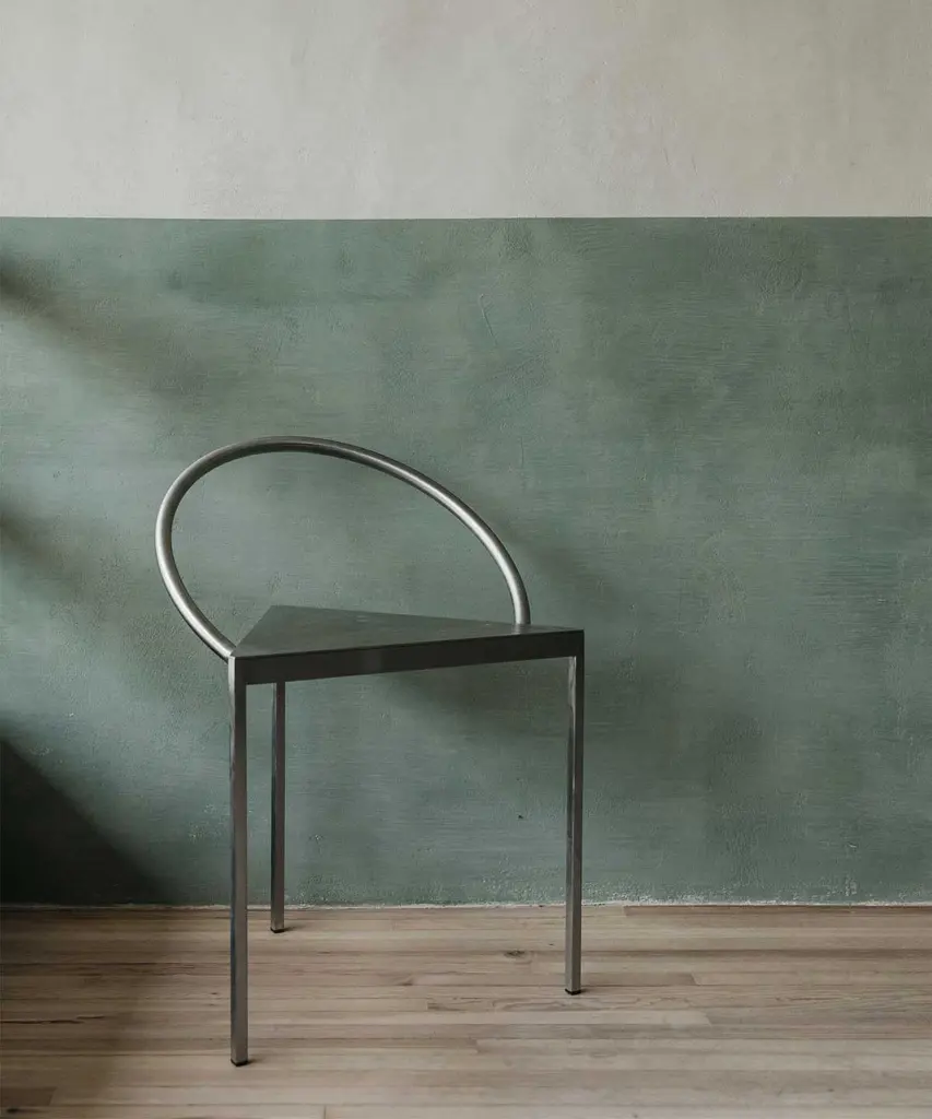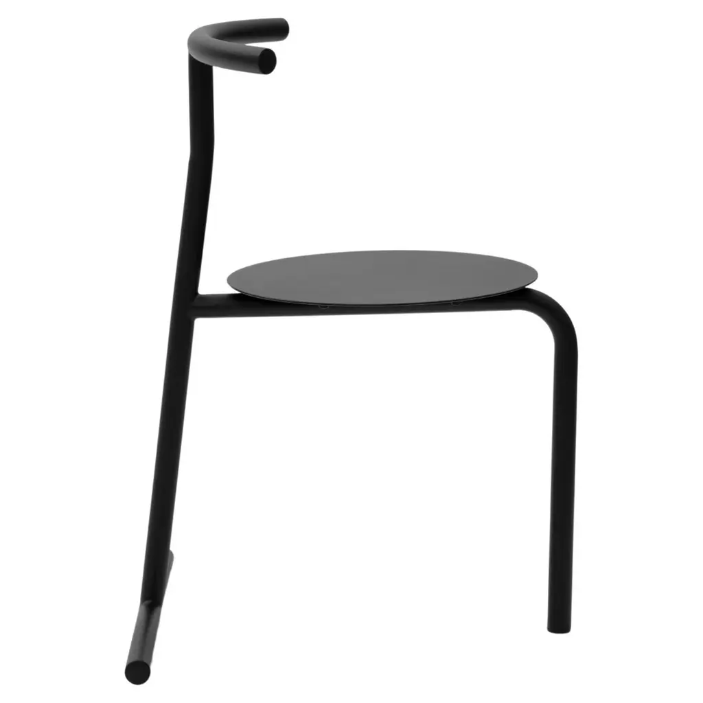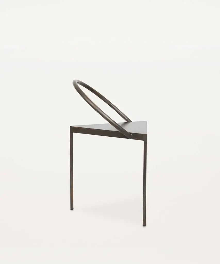 Triangolo Chair, initially conceived by Per Holland Bastrup in 1989 and crafted from steel, is a durable seating item with an industrial aesthetic. The chair features a striking triangular seat, three sleek legs, and a curved tubular backrest. This expressive and sculptural item straddles the line between function and form, serving as seating at a desk or table or as a display piece. Designed by Per Holland Bastrup for Frama - an interior and product design studio based in Copenhagen. The studio is a dynamic testing ground for new designs and projects, embodying their classical, yet boundary-pushing approach.