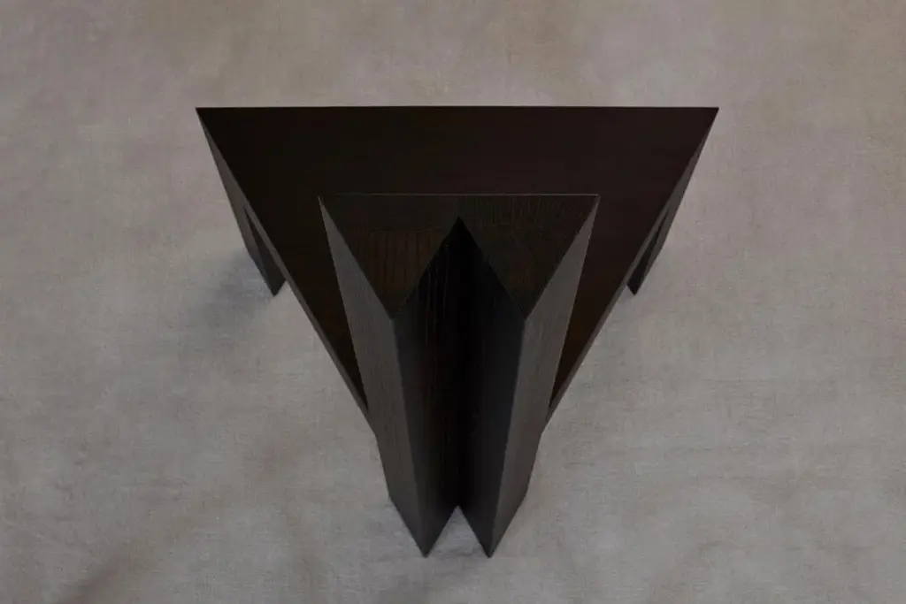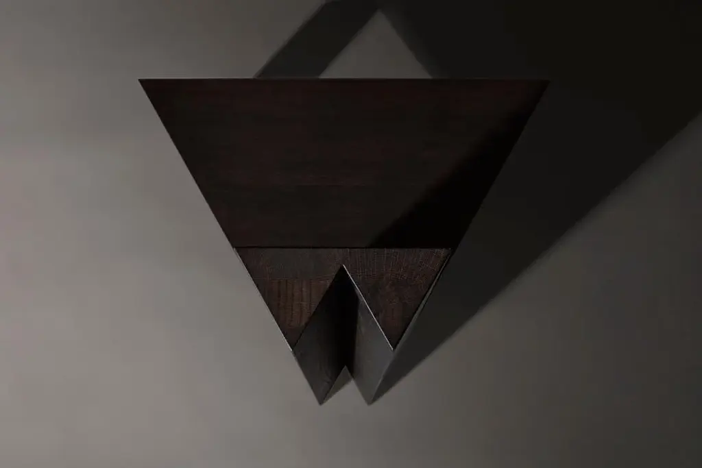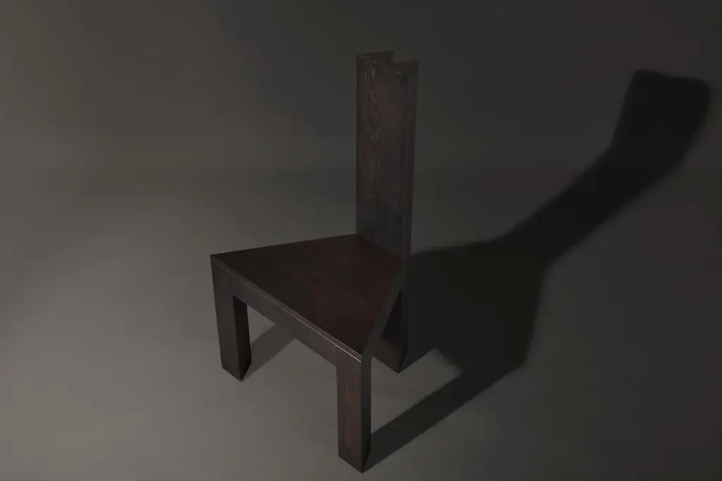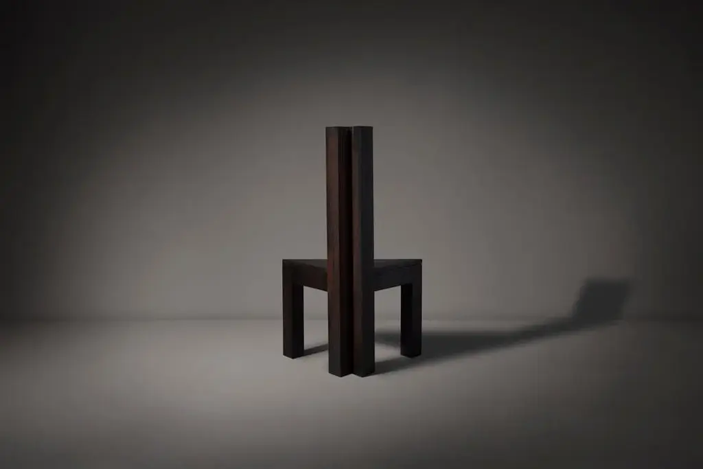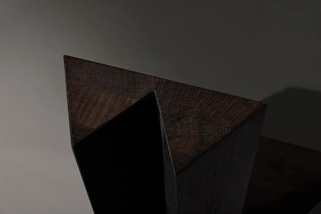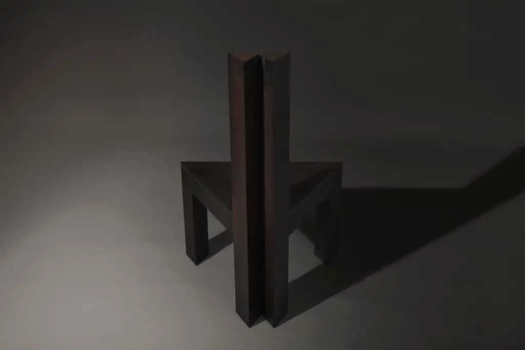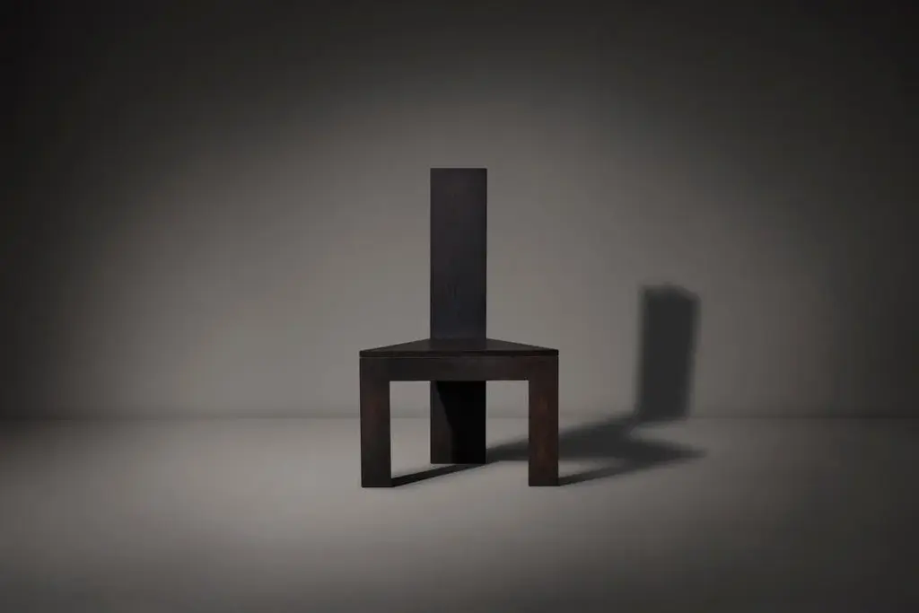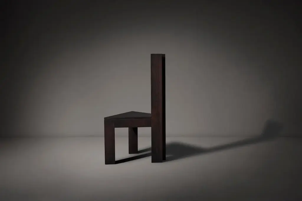 Trigon Chair in Dark Brown European Oak by Mokko Amsterdam Dimensions: D 45 x W 73,5 x H 119,5 cm. Materials: European oak.