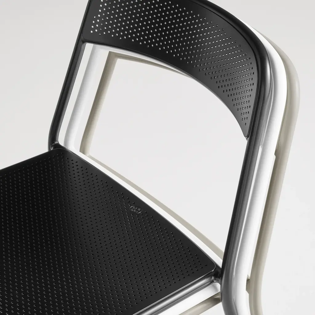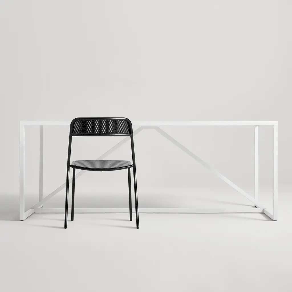 Whatever you do, don’t call it basic. Clean lines and sophisticated geometry form a minimal outdoor chair that’s everything it’s shaped up to be. Perforated seat and back detail apt for wowing guests and weathering the elements. Valid excuse to work, dine and stare off into space alfresco.