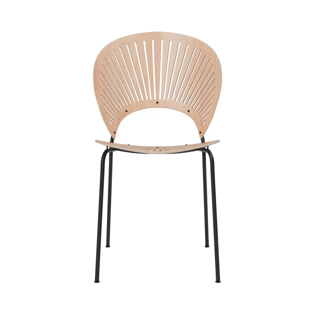Light filters through the intricate cut-outs of this chair, casting dynamic patterns that enliven any space. Featuring a moulded plywood backrest with CNC-milled fretwork, the design takes inspiration from the decorative Gingerbread facades seen in Trinidad. The steel tube frame provides strength and stability, while interchangeable plastic glides help protect floors. Originally designed by Nanna Ditzel in 1993—a key figure in Danish design—the chair is stackable up to eight units, making it ideal for both public venues and private interiors. Its ventilated seat not only enhances comfort but also contributes to improved acoustics.