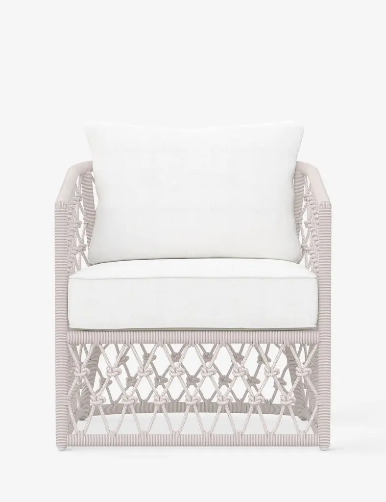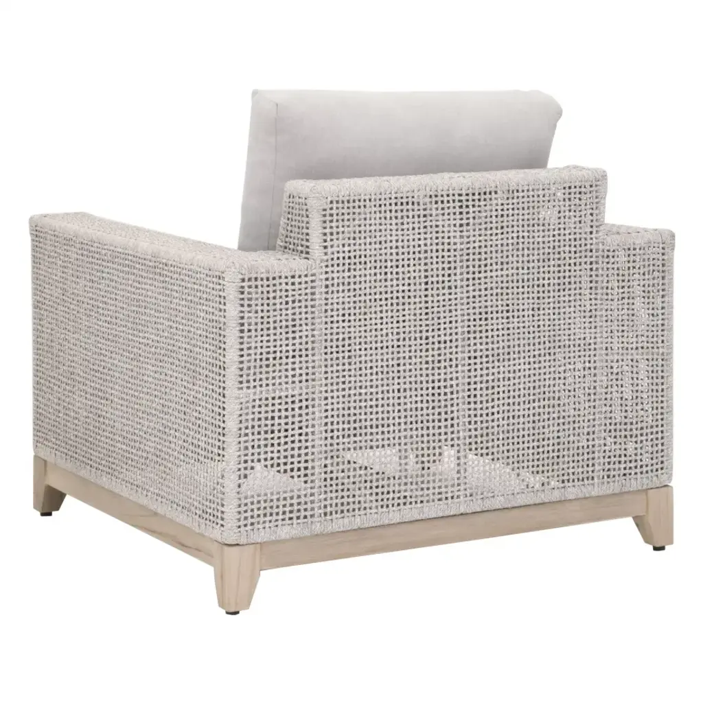 Tropez Outdoor Sofa Chair Taupe & White Flat Rope, Performance Pumice, Gray Teak