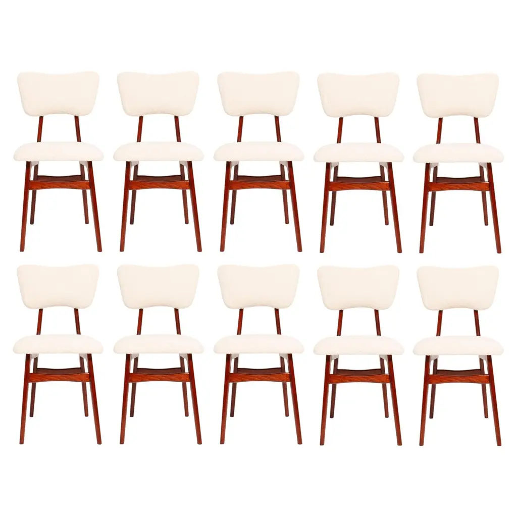 Twelve 20th Century Cream Boucle And Cherry Wood Butterfly Chairs, 1960s, Europe
