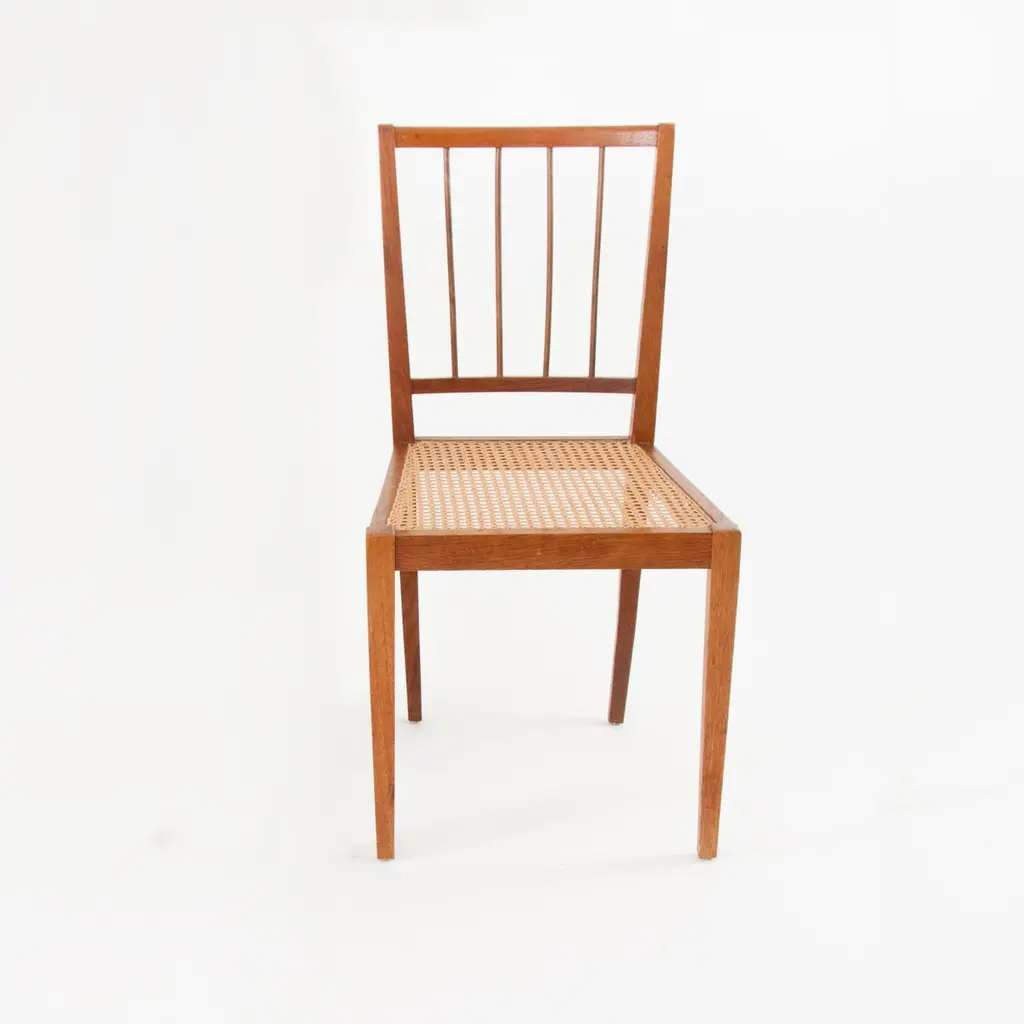 Two beautiful Austrian wooden chairs with woven cane seating from the 1930s. Designed by Julius Jirasek for Werkstätte Karl Hagenauer. The chairs are restored and in excellent condition. Two available, sold and priced per piece.