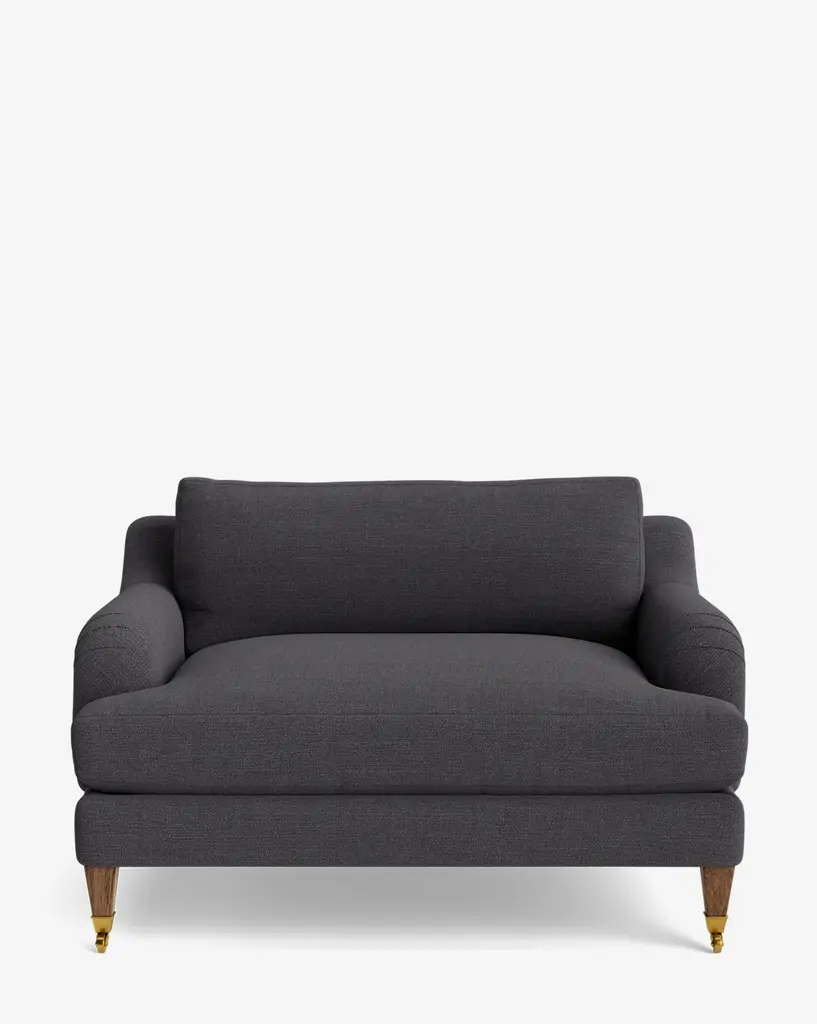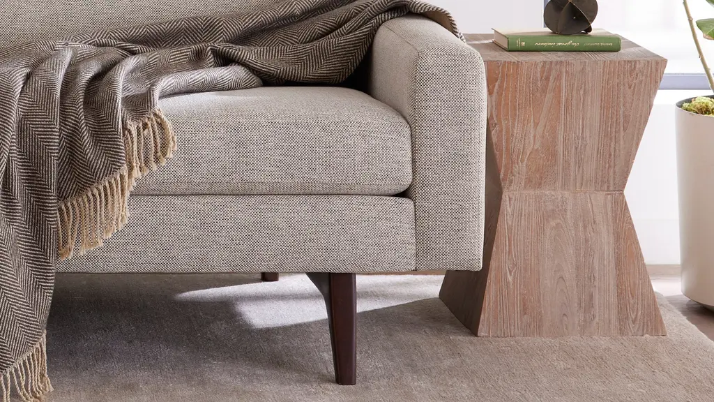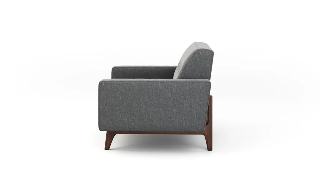 DESIGN Simply modern and slightly classic, the Tyler collection is a versatile choice for just about any space. This design has clean lines, low profile wrap-around side, tufted buttons, and an eye-catching exposed leg detail. Handcrafted in the United States. FEATURES Solid Foundation: Our frames are constructed from precision-cut, FSC-certified engineered wood for unmatched strength and stability, featuring reinforced, interlocking joinery for added durability. Customizable Cushion Options: Choose from standard or down alternative cushions. Standard cushions offer our most supportive sit and a sleek, tailored look that requires minimal fluffing. These cushions feature high-quality, high-resiliency CertiPUR-US® foam core seats wrapped in premium fiber with a high-density foam tight-back cushion. Down alternative cushions deliver our most relaxed yet supportive sit, with a more casual look that requires moderate fluffing. These cushions feature high-quality, high-resiliency CertiPUR-US® foam core seats wrapped in plush down-alternative fiber with a high-density foam tight-back cushion. CertiPur-US® foam is held to the highest standards of product safety and durability, so you can rest easy. Supportive Webbing Suspension: Designed to maximize comfort, our premium webbing system provides a resilient foundation. Customizable Upholstery: Choose from a vast selection of durable premium and performance fabrics and genuine Italian leather to personalize your Tyler Chair's look.