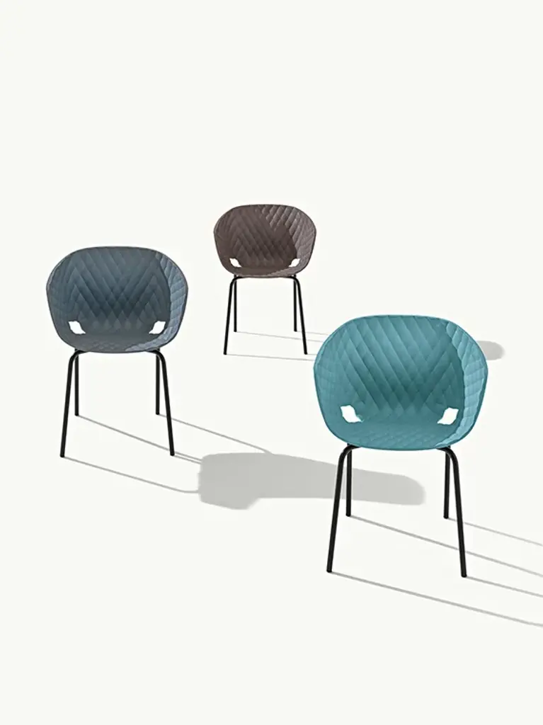 Lounge armchair with steel frame, 4 legs. Polypropylene shell.Metalmobil presents Uni-Ka, the armchair which adds a new dimension to the world of tub chairs thanks to its padded effect texture derived from the Metalmobil’s best-seller Uni. Uni-Ka is a product which captivates with its rounded and welcoming shape; a go-anywhere chair, as the polypropylene seat colour variations and the various choices of steel frame make it ideal for all gatherings, and particularly suitable for restaurants and outdoor premises.