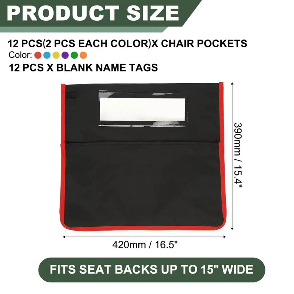 Unique Bargains Classroom Washable Name Card Slots Chair Pockets 12 Pcs Colorful