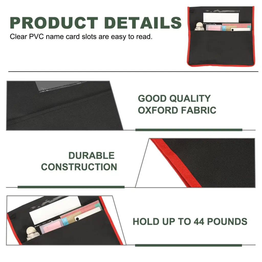 Classroom chair pockets are perfect for classrooms to organize books, pens, planners, notebooks, and folders. Advantage: The classroom chair pockets are made of good quality Oxford fabric, which is not easy to tear, washable. Clear PVC name card slots are easy to read. Washable and easy to keep clean.Instruction: Attach the classroom chair organizers to the backrests of your classroom chairs. Note: Please check the size before purchasing.