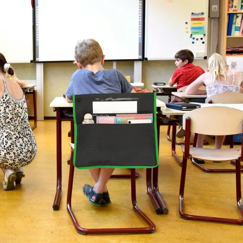 Classroom chair pockets are perfect for classrooms to organize books, pens, planners, notebooks, and folders. Advantage: The classroom chair pockets are made of good quality Oxford fabric, which is not easy to tear, washable. Clear PVC name card slots are easy to read. Washable and easy to keep clean.Instruction: Attach the classroom chair organizers to the backrests of your classroom chairs. Note: Please check the size before purchasing.