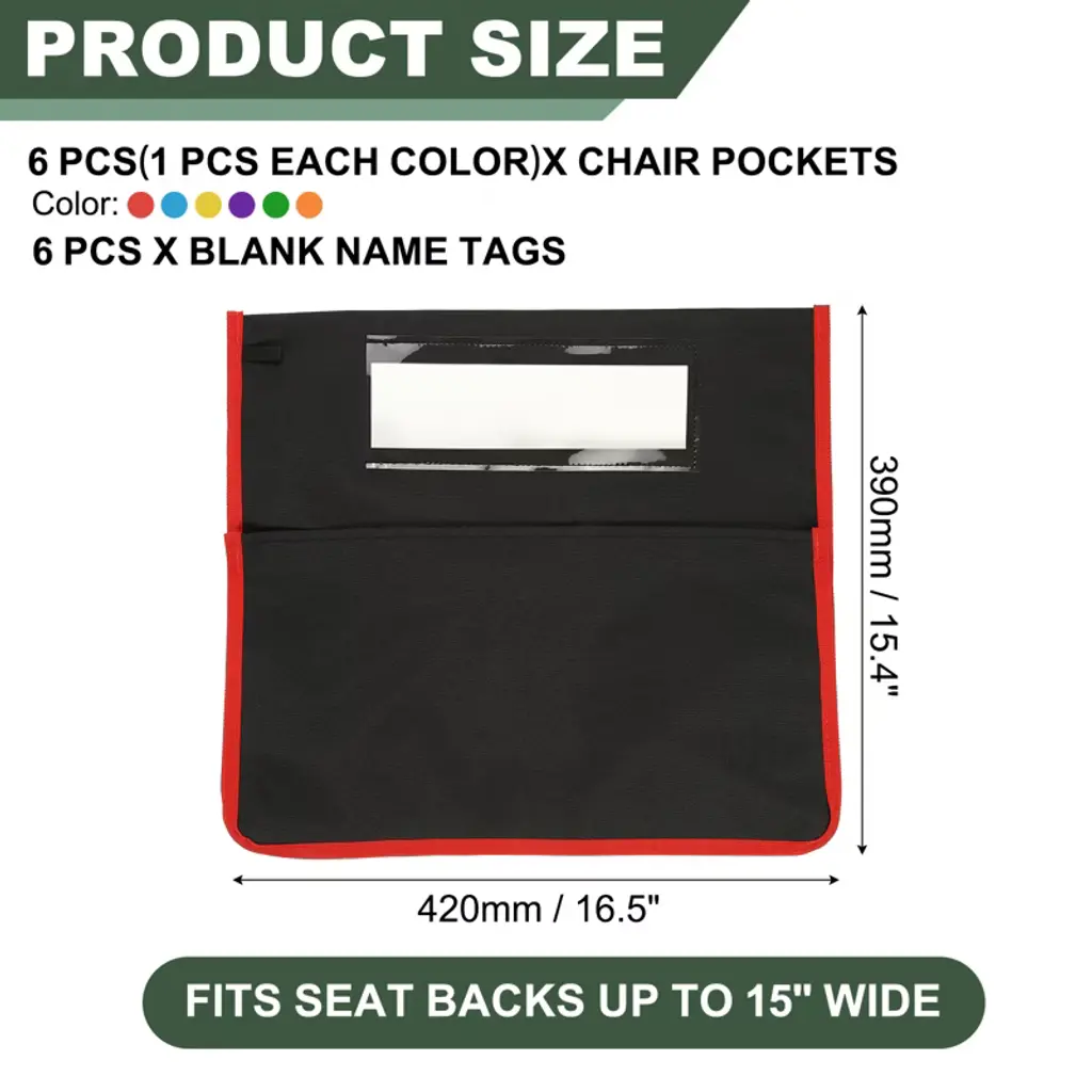 Unique Bargains Classroom Washable Name Card Slots Chair Pockets 6 Pcs Colorful