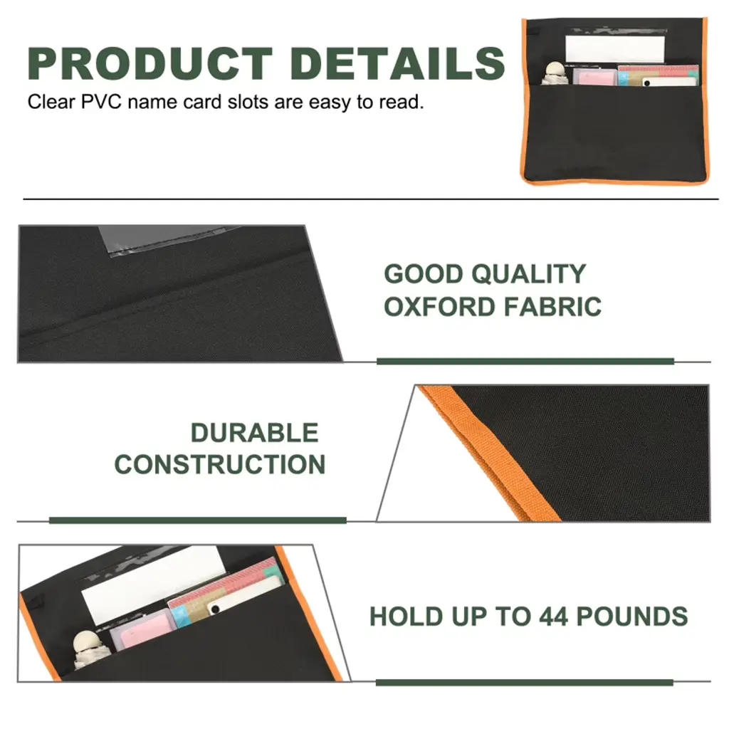 Classroom chair pockets are perfect for classrooms to organize books, pens, planners, notebooks, and folders. Advantage: The classroom chair pockets are made of good quality Oxford fabric, which is not easy to tear, washable. Clear PVC name card slots are easy to read. Washable and easy to keep clean.Instruction: Attach the classroom chair organizers to the backrests of your classroom chairs. Note: Please check the size before purchasing.