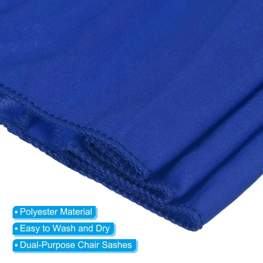 Made of polyester, these chair straps are smooth and durable, resisting shrinkage and deformation after washing. Stitched edges prevent fraying. The vibrant colors add a touch of elegance. These chair straps are perfect for decorating banquet and folding chairs at weddings, parties, celebrations, graduations, special events, and banquets, adding a neat touch.