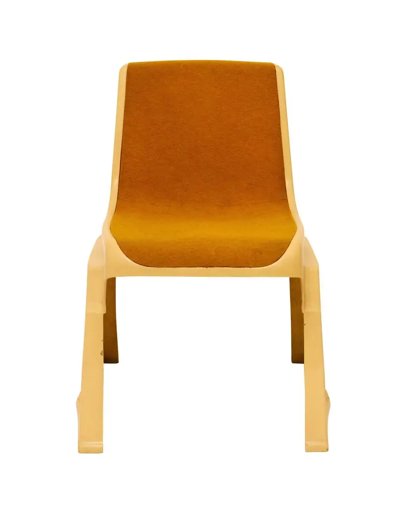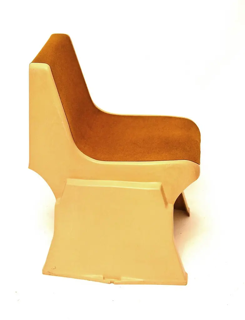 Very rare brutalist stacking chairs by Austrian Architect Prof. Gunther Domenig. There were only about 300 chairs produced in total.Priced and sold indiviually. Up to 8 chairs available.They are made of plastics/fiberglass and the seats are upholstered with a kind of synthetic felt.Good vintage condition. The felt is a little bit low on the seats.We ship worldwide. The shipping costs depend on the number of chairs.