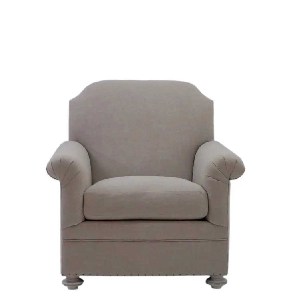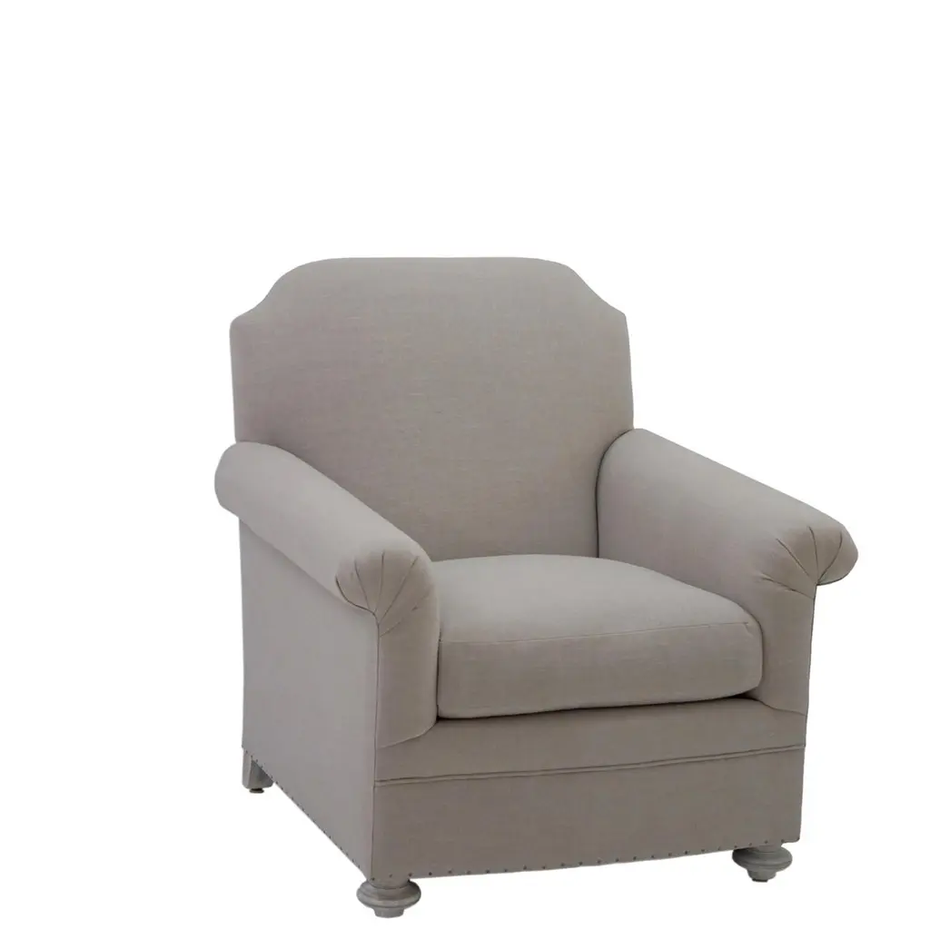 The Camden chair features exposed nail heads on the bottom and handsome rolled and pleated arms. Built with a taller face and shorter legs for a more casual look. Frame constructed of maple and birch wood. Made in our Norwalk, CT workroom. Customizable, built to order. Price does not include fabric. Fabric shown is for image only.Overall: 37.5”W x 39”D x 37.5”HSeat Height: 19.5"COM Price: $3,200 eachCustomization may change the price.How We Work:Made to order by Connecticut-based furniture design and manufacturing company The Tailored Home. Submit your customization desires by 1stdibs messenger for a quote. After orders are placed our workshop manager creates a visual work order for your approval for quality assurance.We accept inspiration photos of pieces you like.2023 - Made to Order9-10 weeks