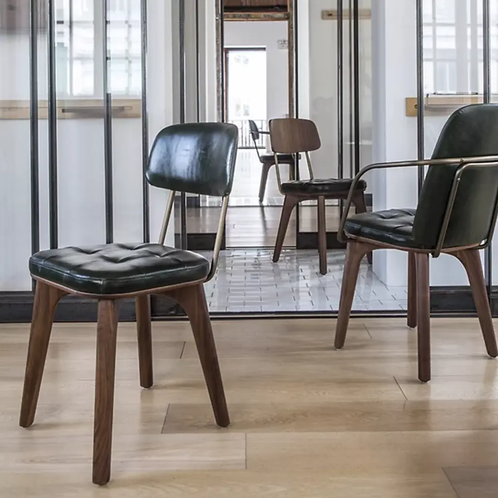 Add a robust industrial edge to inside spaces with the Utility U Chair from Stellar Works. A Neri&Hu design extending upward from hardwood naturally textured and polished to a smooth sheen. A plywood platform with rounded corners secures an old-style pleated seat atop it, dispatching parallel steel rods to a curving seat back of matching material that offers solid support. The chair is strong enough to play well in occupational, high-traffic settings and elegant enough to work in a refined residence.