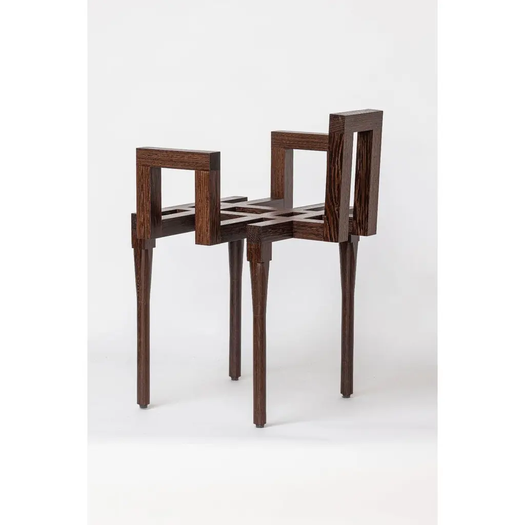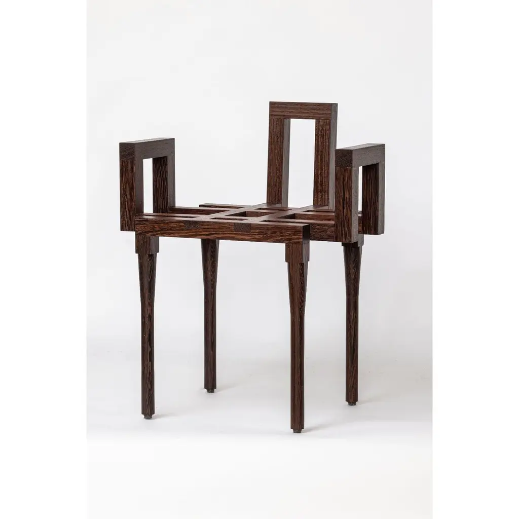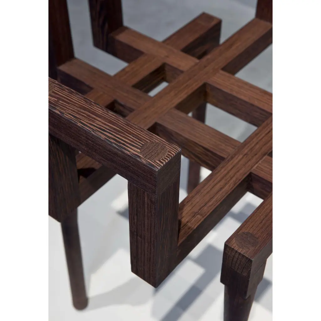 Values comfort chair by Geke LensinkDimensions: D 42.5 x W 49.5 x H 69 cm Materials: wenge wood After graduating from ArtEZ University of the Arts, Geke Lensink started working as an independent interior designer, setting up many exhibitions and stands for numerous clients. Twelve years ago, she decided to chase her dreams and devote herself entirely to designing furniture. For Geke Lensink, furniture is not merely a collection of objects, but also a carrier of stories. The designer translates her own memories of travels and cultures into her autonomous work and all objects are a fusion of thoughts and ideas. Her recent designs is about our world in which segregation slowly merges and the diversity of the global community becomes more visible, but it is also about acceptance and arrogance.The reflections on these subjects are made tangible in minimalist designs with bright colours, creating a balance between functionality and beauty. The use of natural materials is a matter of course for Geke.