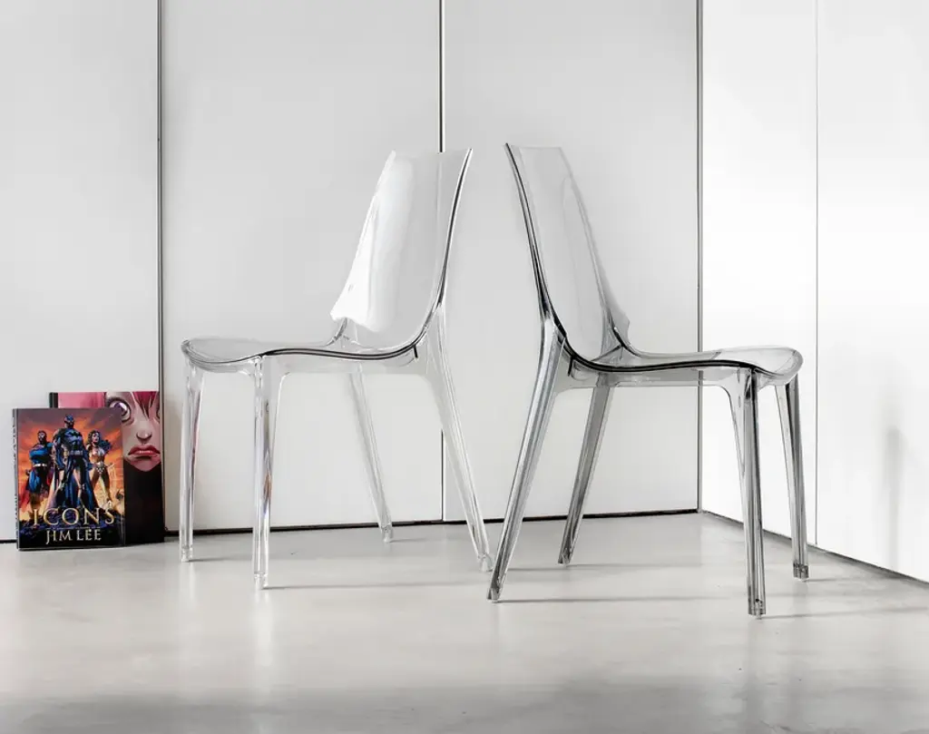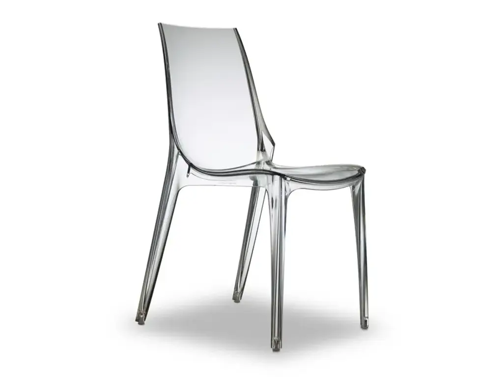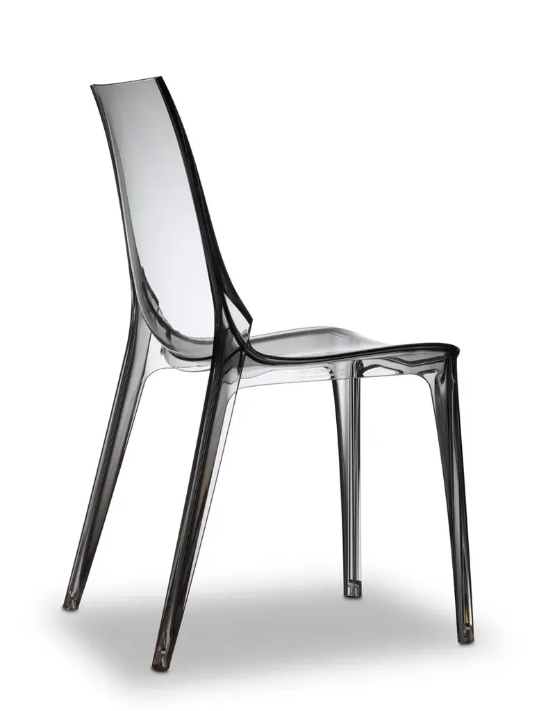 VANITY CHAIR by Arter & Citton is the perfect chair in any type of surroundings, characterized by a fresh and contemporary design. Made from polycarbonate, in the two versions, with and without arms, Vanity is available in: translucent, translucent smoked grey, glossy white, glossy dove grey and glossy black for the the version without arms. For indoor/outdoor use. Stackable.