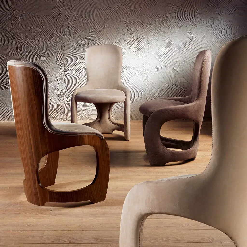 Inject a modern touch into any living space with the Venere Chair. Its striking yet effortless silhouette is defined by clean lines and sweeping curves, crafted from luxurious Canaletto walnut. The rich brown tones of the wood are enhanced with beige nubuck leather, providing warmth, comfort and style. A sleek addition to the contemporary home.