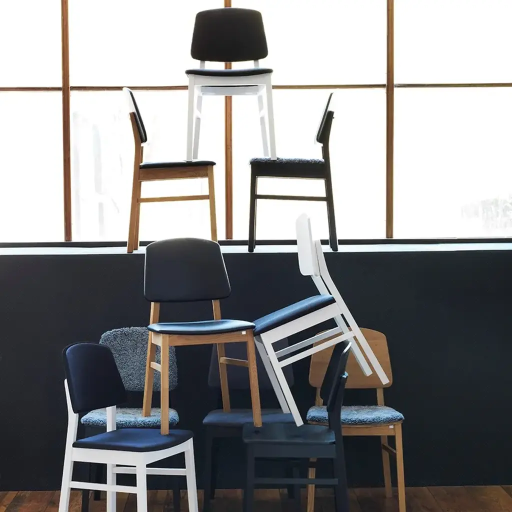 Verona is a chair in solid oak, ash or birch. It is available in the version with integrated cushion and with padded back. Different finishes and colors available.