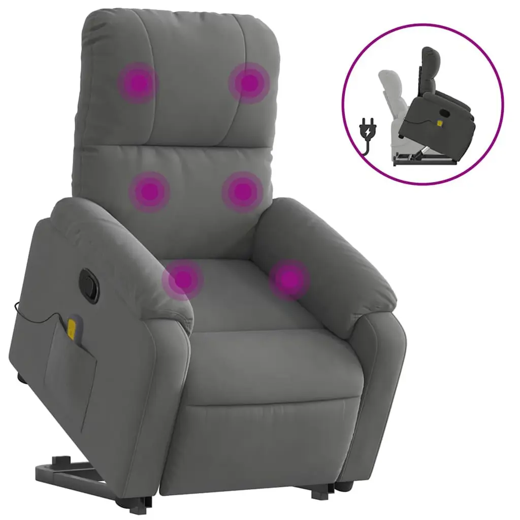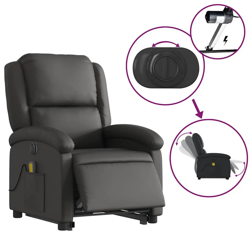Sit back and drift away in this highly comfortable electric stand up massage recliner chair!Power lift function: This recliner chair for the elderly is equipped with an electric motor for the lifting-up function. Thanks to the function that pushes the entire chair up, you can easily stand without stressing your back and knees with a simple press of the button.Electric reclining function: This reclining chair is also equipped with an electric motor that helps automatically adjust the footrest and backrest to any position as per your comfort with a simple press of the button on the side of the chair. This feature allows for a maximum tilt of 135 degrees. Additionally, the backrest can go automatically back to the original place with an easy press of the button.Vibration function: The featured 6 massage points let you experience a better-targeted massage. Additionally, the included hand control allows you to pick different massage programs. The massage function is powered by the USB connector that requires a certified 5V USB power source (not included).Comfortable seat experience: The thickly padded seat, backrest, and wide armrests covered in real leather provide a cozy sensation, making you feel embraced while seated. Real leather is a naturally timeless material. It can last a lifetime with proper care and maintenance. The smooth surface also gives it a stylish look while ensuring optimal comfort.Convenient side pocket: This armchair has a side pocket for your remote control or keeping your essential items within easy reach.Solid and stable frame: The frame made of wood and metal provides a strong structure and stability. This reclining armchair is comfortable and durable.