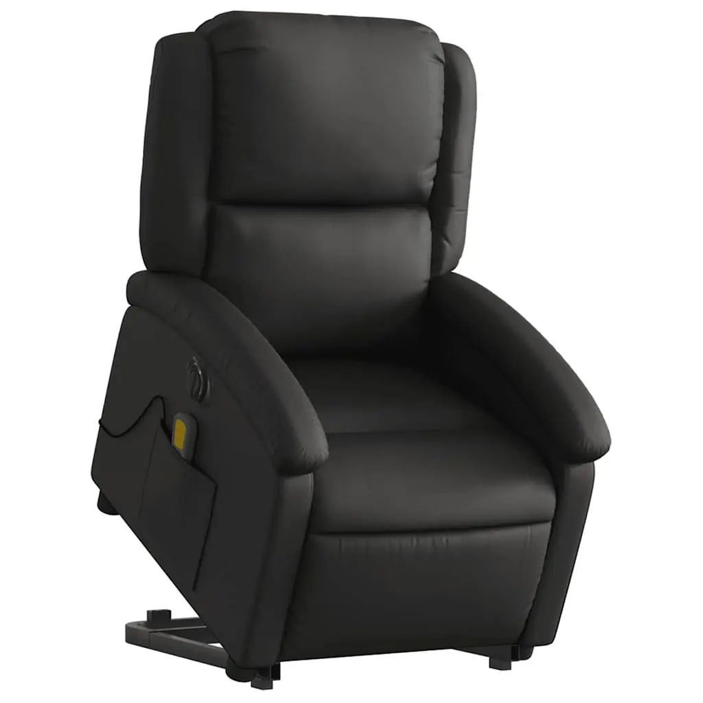 Vidaxl Electric Stand Up Massage Recliner Chair Black Real Leather