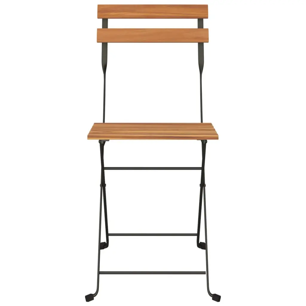 These folding patio bistro chairs are perfect addition to your garden and terrace, creating a lasting impression!Durable material: Solid teak wood is a beautiful natural material. It has been seasoned, kiln dried and then fine sanded to give a very smooth appearance. Teak wood is known for its exceptional strength and weather resistance.Stable frame: The powder-coated steel frame ensures sturdiness and stability.Foldable design: The garden chairs can be easily folded away when not in use, for easy storage and transportation.Good to know:To make assembly as easy as possible, each product is delivered with a manual.Note:To make sure your outdoor furniture stays beautiful, we recommend protecting it with a waterproof cover.