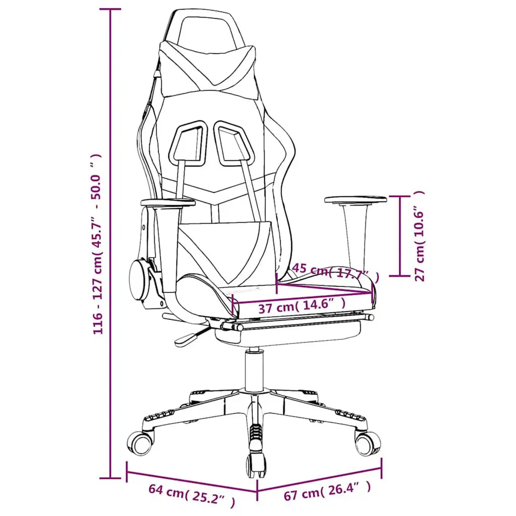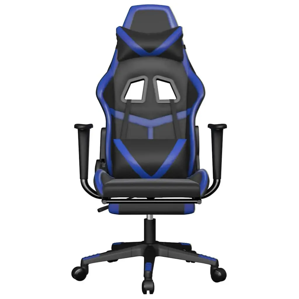 This gaming chair is all about combining style and function, with a sleek black and blue faux leather look that fits perfectly in any modern setup. Whether you're gaming, working on your computer, or just chilling, this chair's got your back, literally. It provides top support and an ergonomic design for those long sits, ensuring you're comfy while you work or game away. Ergonomic Structure: The gaming chair promotes good posture and comfort, letting you game for ages without discomfort. It aligns well with your back for top support.USB-Powered Massage: A fab feature is the USB massage function integrated into the waist pillow, which gives you a nice relaxing vibe while seated. It helps relieve stress and tension.Adjustable Height: You can easily change the height to fit your preferences, making it comfy for everyone.Sturdy Footrest: A footrest is included for users seeking extra comfort while seated, aiding in maintaining better posture during long periods.Modern Aesthetic: The trendy black and blue color looks great and makes a bold statement in any room, whether in an office, gaming area, or living space.