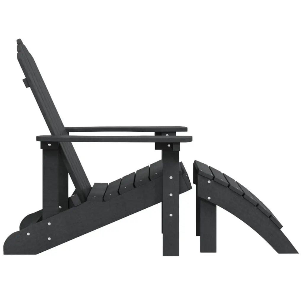 This Garden Adirondack Chair with Footstool is the ultimate outdoor relaxation spot, blending style and comfort seamlessly. With its classic Adirondack design, it has a slanted back and wide armrests that provide supportive seating and look fantastic outdoors. Whether it’s on the patio, balcony, or in the garden, it’s the perfect place to kick back with a book or a drink. Comfy Design: The ergonomic shape of the chair guarantees a lazy afternoon. The footstool makes it even better, fully supporting your feet. Weather-Resistant: Built with UV-resistant materials, this chair stands up to the sun without fading or falling apart, so it’ll look good year after year. Flexible Use: This Adirondack chair suits various outdoor spots, whether it’s your garden, balcony, or patio. Its charming design and handy features are perfect for sprucing up your outdoor living. Classic Style: The traditional Adirondack shape not only gives you a comfy seat but adds a rustic vibe to your decor. The anthracite gray color goes beautifully with any outdoor setting. Easy Maintenance: Thanks to the synthetic materials, this chair’s a breeze to clean. Just wipe it down with a damp cloth and steer clear of harsh chemicals.