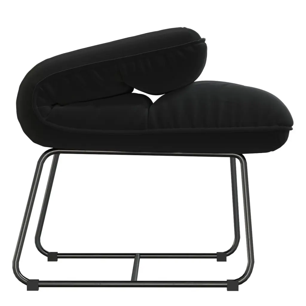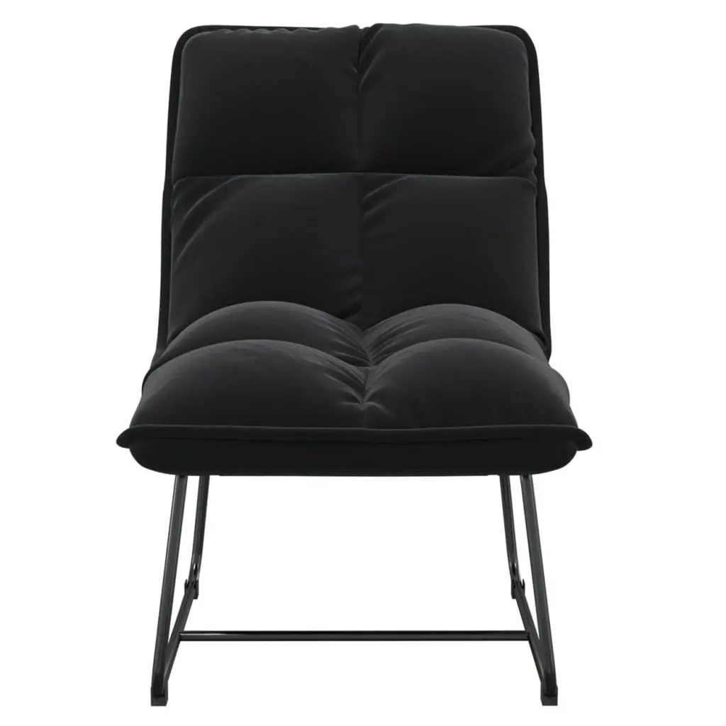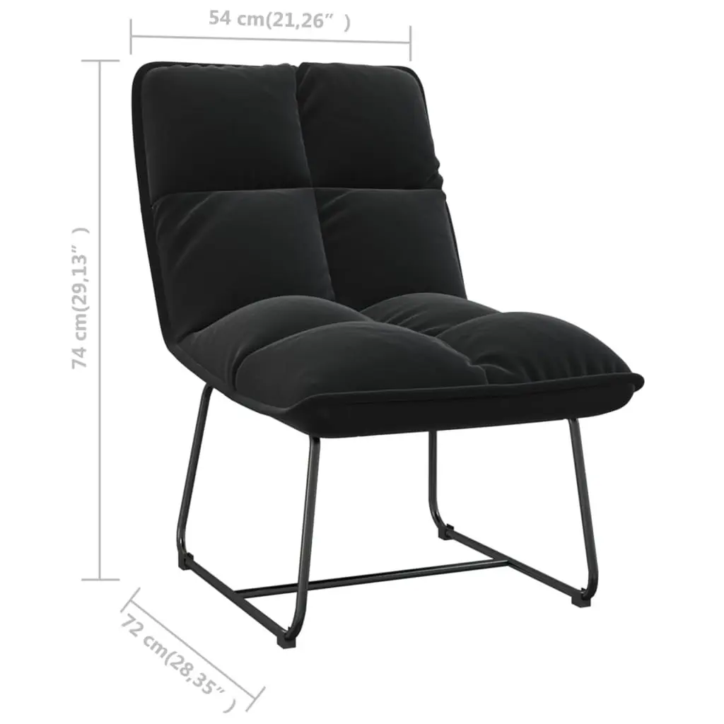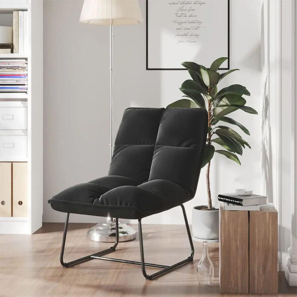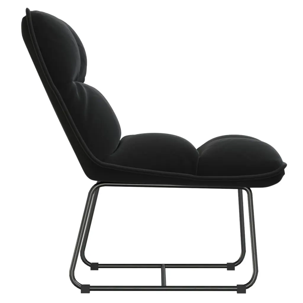 This lounge chair boasts a modern design that perfectly mixes style and comfort, redefining how you relax at home. The plush black velvet upholstery is lovely to touch, encouraging you to sink in and chill out—ideal for snuggling up with a good book or adding a sophisticated touch to your space. Exceptional Comfort: The tufted seat cushion hugs your body for hours of lounging pleasure. Versatile Use: Great for reading, relaxing, or just enjoying a chill moment at home. Easy Maintenance: The velvet fabric is a doddle to clean, keeping your chair looking fresh. Stylish Accent: Its sleek black finish and modern design fit perfectly in different interiors, from contemporary to minimalist. Durable Build: With a sturdy metal frame, this lounge chair is built to handle everyday use.