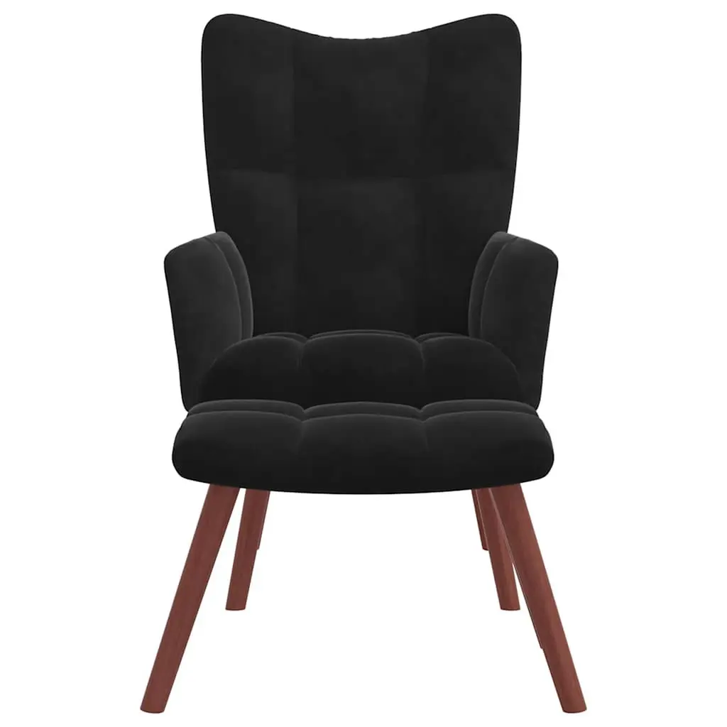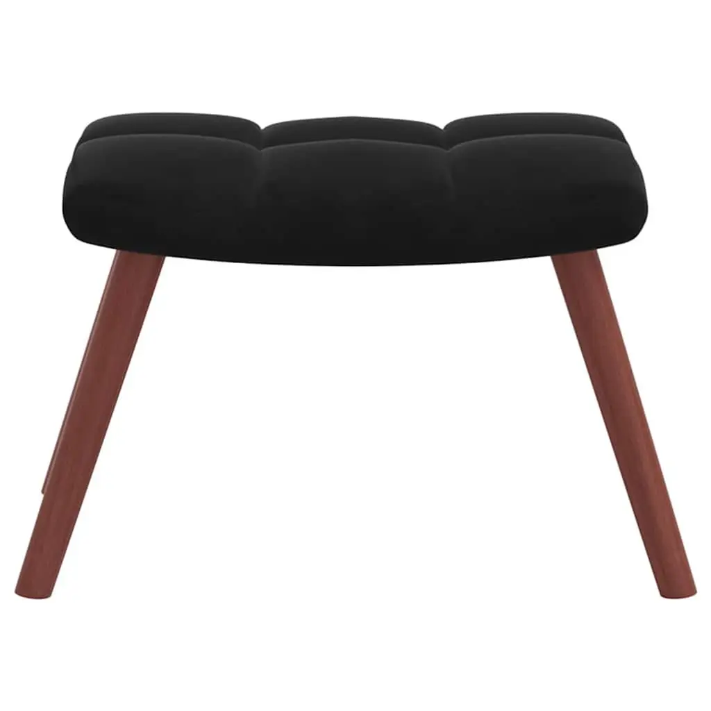 This Modern Relaxing Chair with Stool gives you the perfect mix of style and comfort, making it a must-have for any living area. With its lovely black velvet upholstery and comfy cushioning, this armchair invites you to kick back and relax, whether you’re reading a book in bed or enjoying a quiet evening in your lounge. Plush Velvet Upholstery: The chair is enveloped in soft velvet, ensuring a luxuriously comfortable experience that you’ll love sinking into for hours.Durable Frame: Crafted with a metal frame and solid rubber wood legs, this chair promises long-lasting durability and stability for everyday use.Stylish Footstool: Accompanied by a matching stool, it provides extra comfort, allowing you to rest your feet while lounging or watching television.Compact Design: Its standard size fits effortlessly into smaller spaces, making it ideal for apartments and cozy rooms without compromising on comfort.Easy Maintenance: The removable cushion cover features a zipper closure for hassle-free cleaning, ensuring your chair stays looking pristine.