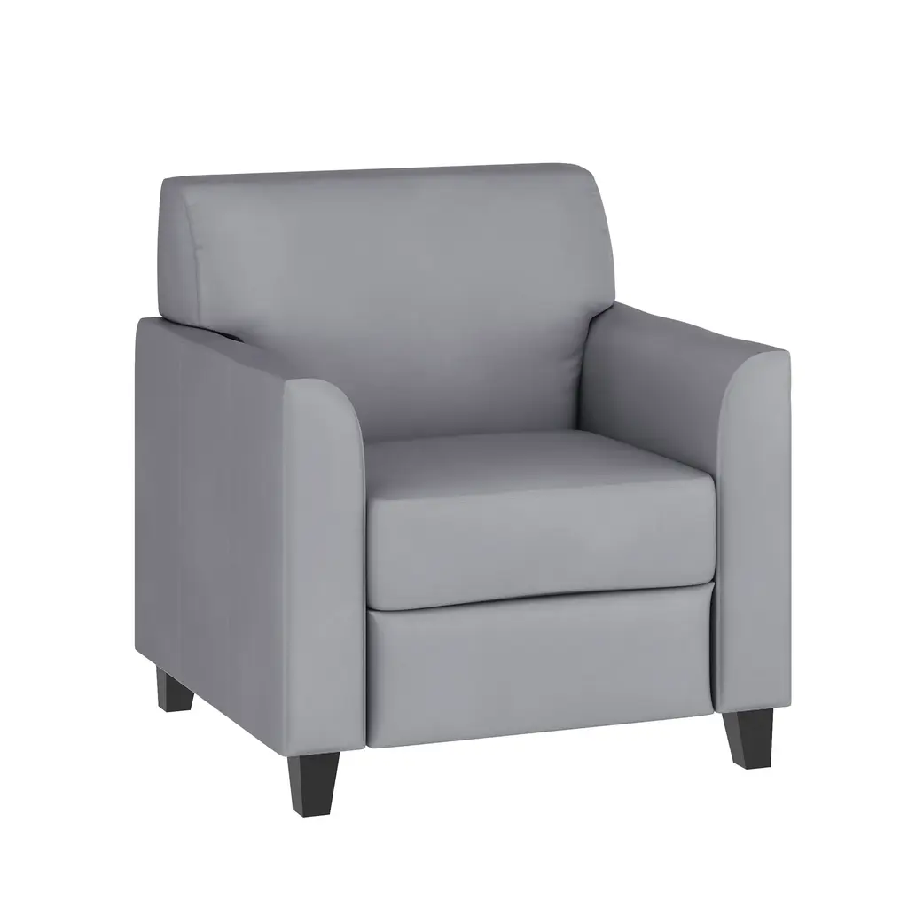 This modern sofa chair is a perfect mix of style and practicality, giving your living area, bedroom, or office a lovely touch. With its sleek black faux leather upholstery and minimalist vibe, it fits right in with your contemporary decor while providing a cozy place for reading or just chilling. Stain-Resistant Fabric: This chair’s fabric fights stains like a pro, keeping it looking sharp and easy to maintain over time. Contemporary Design: With its clean lines and geometric fabness, this chair looks stunning and adds sophistication to any indoor space. Comfortable Seating: The boxed cushion gives you structured comfort, the ideal combo of softness and support for those long sit-downs, perfect for reading or just chilling. Durable Frame: Made with a tough steel frame, this chair is built to take the use, providing durability and stability while holding up to 242.5 lb, perfect for a range of users. Versatile Use: Ideal for anywhere — living room, bedroom, or office — it nails multiple functions while looking great in your decor.