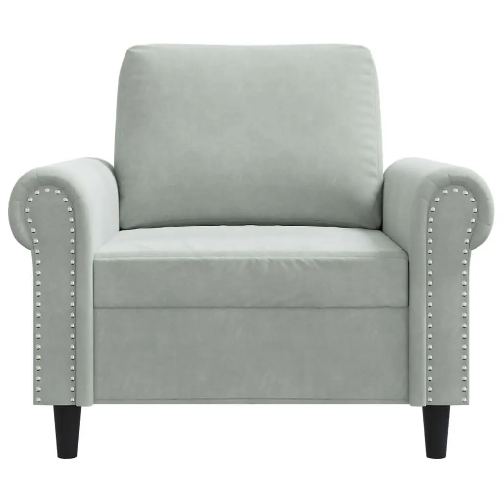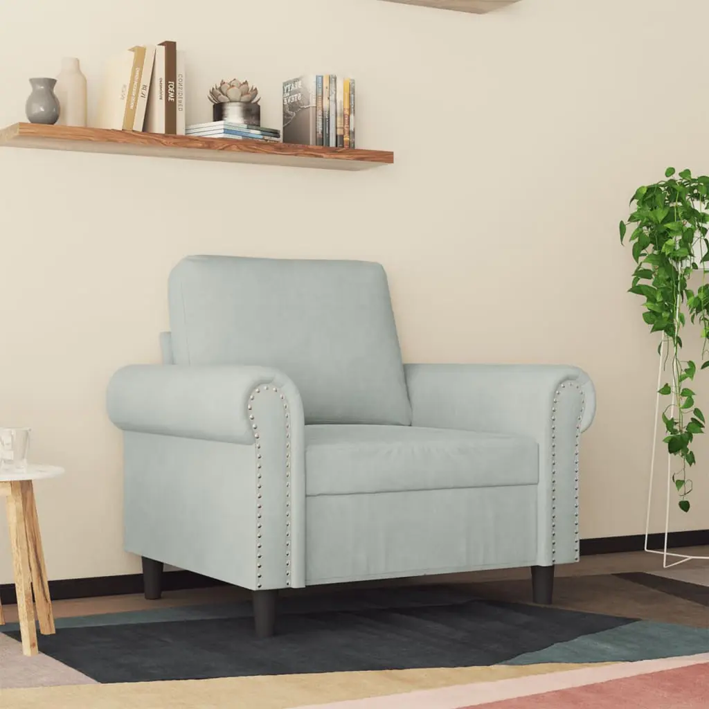 This stylish light grey velvet armchair is all about comfort and looks great in any room. Whether you’re reading a book or having a movie night with friends, this chair’s plush seat and modern design will boost the vibe of your home. Luxurious Velvet Touch: Made from high-quality velvet, the armchair has a soft, silky feel that's comfy to sit on. The lush texture invites relaxation, adding warmth and style to your decor.Contemporary Appeal: With clean lines and minimalist design, this armchair fits in with all sorts of interiors. It’s a nice piece that works in both traditional and modern settings.Optimized Comfort: The chair has cushioned armrests and a removable cushion, focusing on comfort with inviting support. Its ergonomic design is great for those long reading or TV-watching sessions.Durable Construction: Built on a strong metal frame, this armchair can handle everyday use, supporting weights of up to 242.5 pounds. The sturdy legs provide stability, so you can relax without worries.Versatile Usage: Perfect for living rooms, bedrooms, or offices, this chair is multi-functional. Great for reading, chatting, or unwinding, it fits effortlessly into your life while keeping stylish and useful.