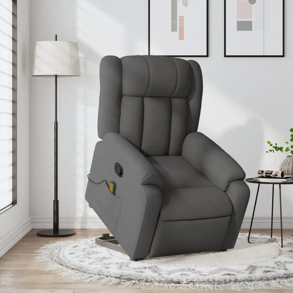 Vidaxl Stand Up Massage Recliner Chair Dark Gray Fabric
