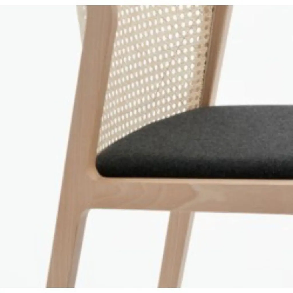 Vienna chair, natural beech wood, and nord wool anthracite by Colé Italia with Emmanuel GallinaDimensions: H 78, W 48, D 50 cmMaterials: Natural Beechwood chair with straw back and upholstered seatAlso available: vienna canaletto, vienna little armchair, vienna soft little armchair, & different materials,TC: C.O.M. fabric - send us your own materialCA: Cat A - Angel (polypropylene), Ganesha (synt. leather), Nord Wool (felt)CB: Cat B - Tiffany (polyestere), Lana (aquaclean)CC: Cat C - Velvetforthy (Velvet), Topia (wool), Novum (Wool), Opera (felt)CP: Cat P - Milano (full grain leather) Vienna is an extraordinarily comfortable and elegant collection of chairs and armchairs designed by Emmanuel Gallinawho loves to quote Brancusi when saying that “simplicity is complexity resolved”. Inspired to the 50’s of Marcel Gascoin,but also to Vienna at the end of the 19th century. A tribute to Alfred Sloan’s American pragmatism joined to Europeanstyling and, in this particular case, to the renowned Italian talent constantly aiming to harmonize beauty and functionality.In solid beech and straw, it is a perfect combination between digital machines and handcraft. The structure is in solidbeech. The back is in hand-braided Vienna straw fixed in a milling. The padded seat is available in different fabrics fittedfor contract use. In the variation Vienna Soft, both chair and armchair have totally upholstered seat and back.Colé is a young Italian design brand, with a high-end production 100% made in Italy. Born from the experience of Matteo De Ponti, architect, who grew up in one of the most outstanding Milanese design families, and the artistic sensibility of Laura Macagno, degree in Economics and passionate of art and design. Our Mission is to create design icons, beautiful and comfortable pieces that can Stand the test of time, furnishing houses of international and sophisticated clients, and realized with craftsmanship, thus unique. “We love objects which own deep roots, excellent quality, and a strong evocative power. Archetypal forms dressed with new beauty without losing their classical composure”.Our expressive research is inspired by the utopian force of Italian eminences grises architects and designers of the ’50s, the Scandinavian design, the Bauhaus, ethnic handcraft and houses of famous writers of the XX century, all different as a style but united by the intense soul of those who worked and lived there.