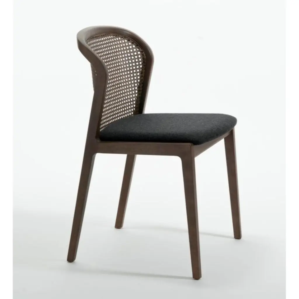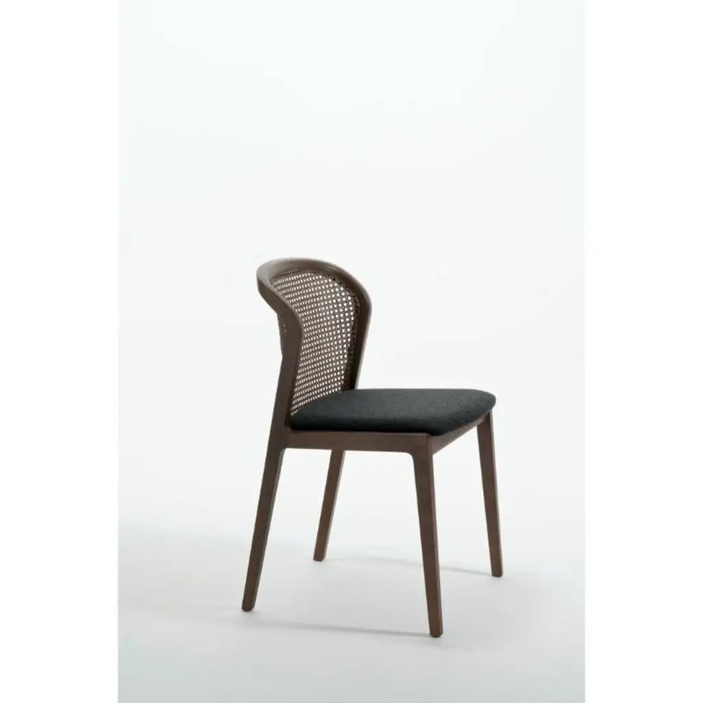 Vienna chair, Canaletto, nord wool Anthracite by Colé Italia with Emmanuel GallinaDimensions: H 78, W 48, D 50 cmMaterials: Stained beech wood chair with straw back and upholstered seat.Wood stained finishing: CA Canaletto; WE Wengé; BK BlackAlso available: Vienna beech wood, Vienna little armchair, Vienna soft little armchair, & different materialsTC: C.O.M. fabric - send us your own materialCA: Cat A - Angel (polypropylene), Ganesha (synt. leather), Nord Wool (felt)CB: Cat B - Tiffany (polyestere), Lana (aquaclean)CC: Cat C - Velvetforthy (Velvet), Topia (wool), Novum (Wool), Opera (felt)CP: Cat P - Milano (full grain leather).Vienna is an extraordinarily comfortable and elegant collection of chairs and armchairs designed by Emmanuel Gallinawho loves to quote Brancusi when saying that “simplicity is complexity resolved”. Inspired to the 50’s of Marcel Gascoin,but also to Vienna at the end of the 19th century. A tribute to Alfred Sloan’s American pragmatism joined to Europeanstyling and, in this particular case, to the renowned Italian talent constantly aiming to harmonize beauty and functionality.In solid beech and straw, it is a perfect combination between digital machines and handcraft. The structure is in solidbeech. The back is in hand-braided Vienna straw fixed in a milling. The padded seat is available in different fabrics fittedfor contract use. In the variation Vienna Soft, both chair and armchair have totally upholstered seat and back.Colé is a young Italian design brand, with a high-end production 100% made in Italy. Born from the experience of Matteo De Ponti, architect, who grew up in one of the most outstanding Milanese design families, and the artistic sensibility of Laura Macagno, degree in Economics and passionate of art and design. Our Mission is to create design icons, beautiful and comfortable pieces that can Stand the test of time, furnishing houses of international and sophisticated clients, and realized with craftsmanship, thus unique. “We love objects which own deep roots, excellent quality, and a strong evocative power. Archetypal forms dressed with new beauty without losing their classical composure”.Our expressive research is inspired by the utopian force of Italian eminences grises architects and designers of the ’50s, the Scandinavian design, the Bauhaus, ethnic handcraft and houses of famous writers of the XX century, all different as a style but united by the intense soul of those who worked and lived there.