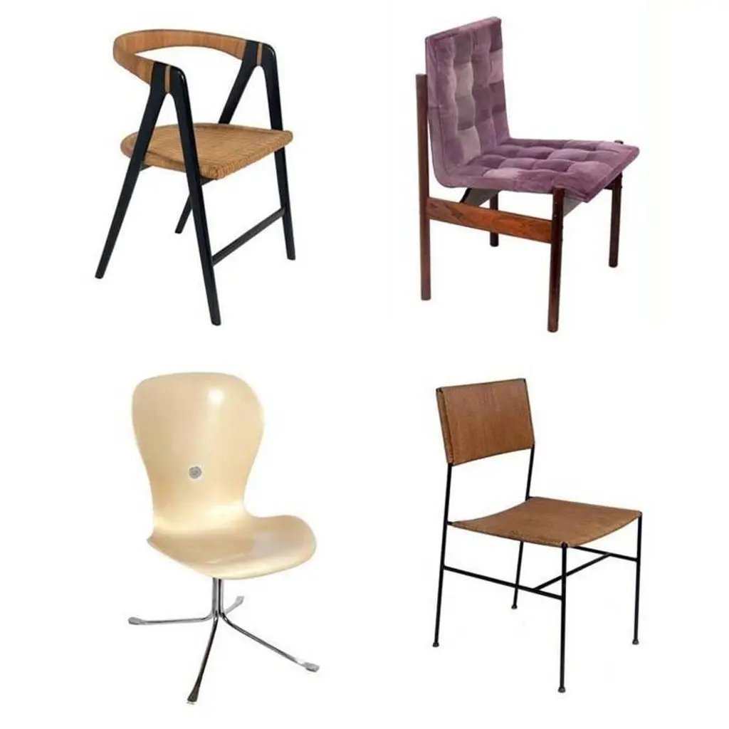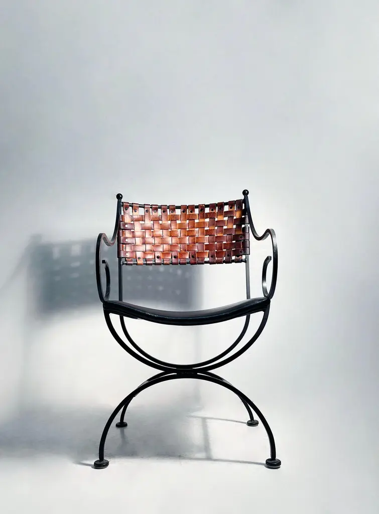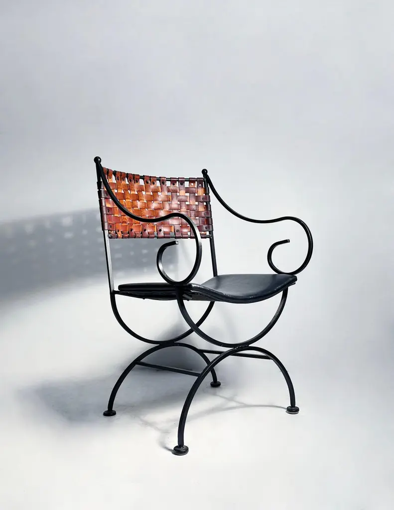 Vintage Arthur Umanoff Scroll Arm Chairs Leather Strapping Mccobb Style