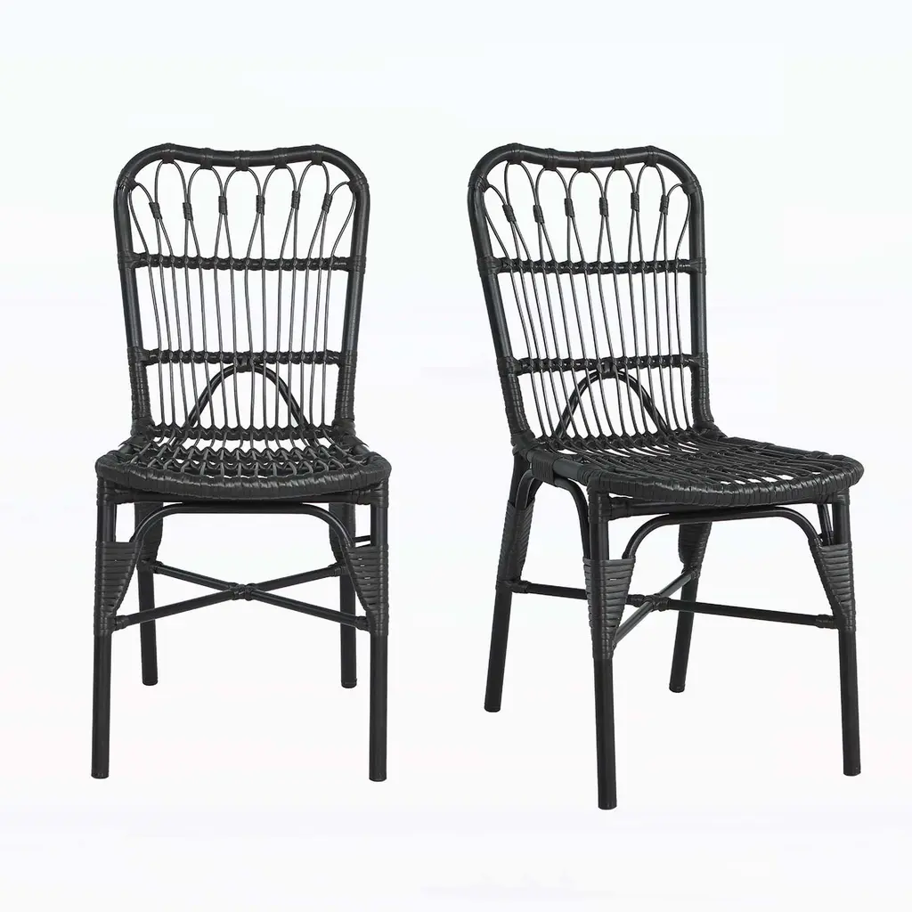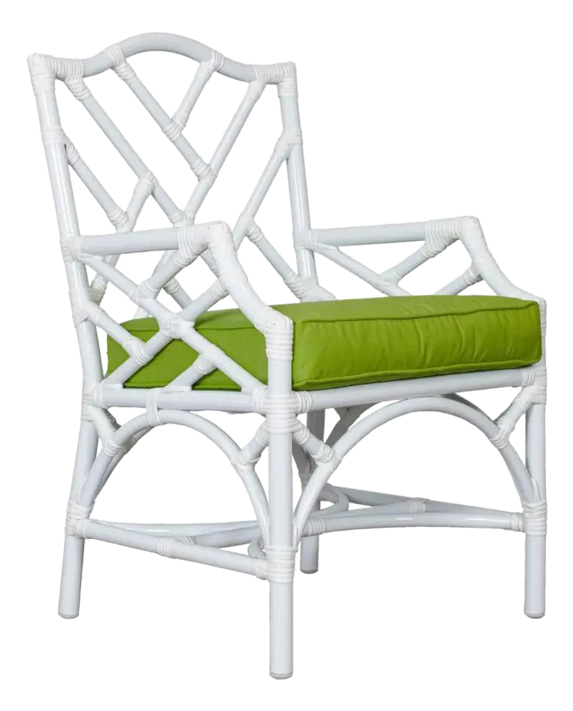 Vintage Coastal Painted Rattan Arm Chairs - A Pair