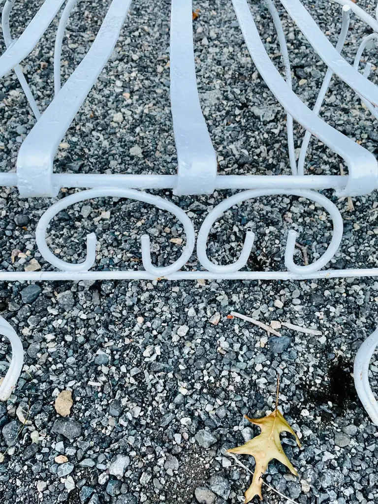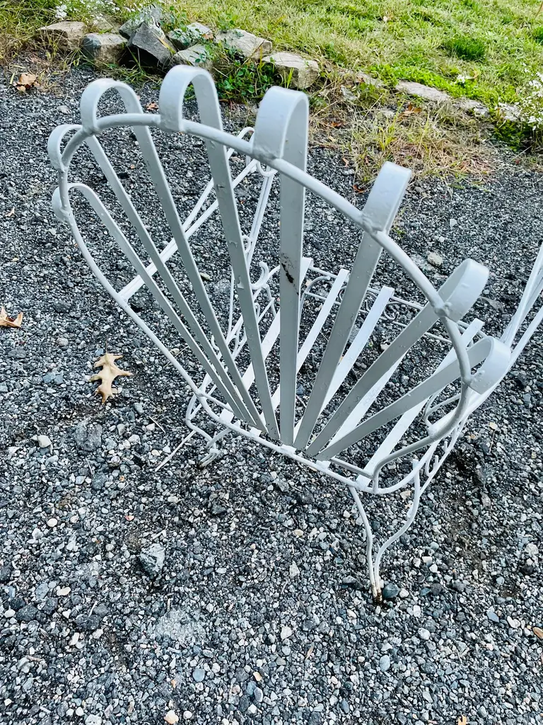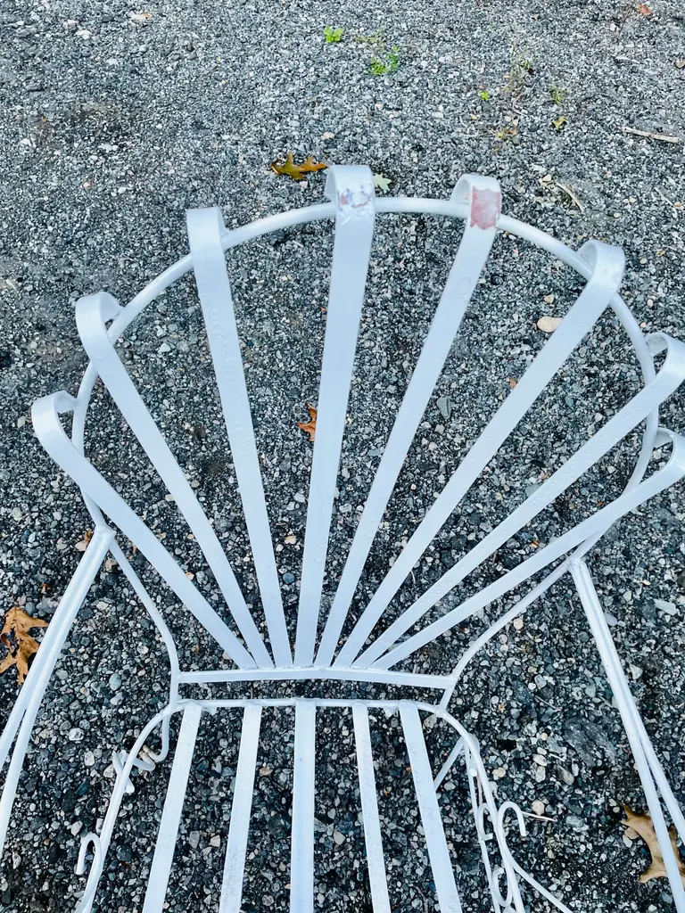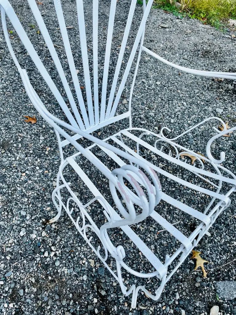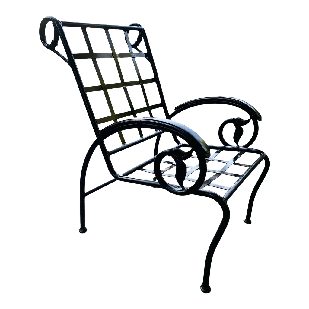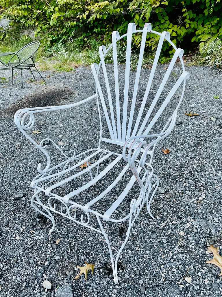 Vintage Wrought Iron Outdoor Patio Seating Upgrade your patio and add some vintage charm to your outdoor space with this beautiful French Wrought Iron Garden Chair. Crafted from sturdy wrought iron, this five-piece lounge set is perfect for relaxing with friends and loved ones on the new ivory cushions. Wrought Iron material is known for its quality and durability, so you can be sure that this furniture will last for years to come. Bring a touch of elegance and sophistication to your outdoor oasis with this stunning wrought iron patio chair. 4 Available. See more like this here: chairish.com/shop/vintageoutdoorlivingstyle Expected Delivery within 2-4 weeks across the United States