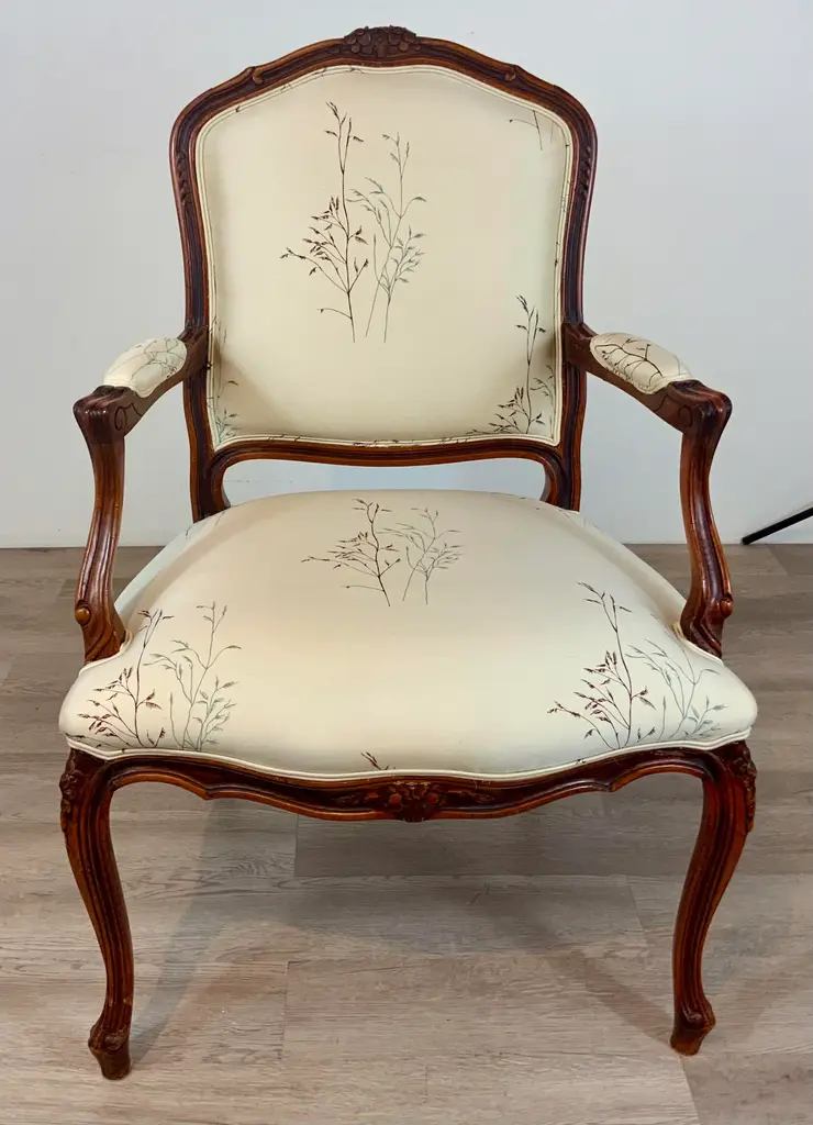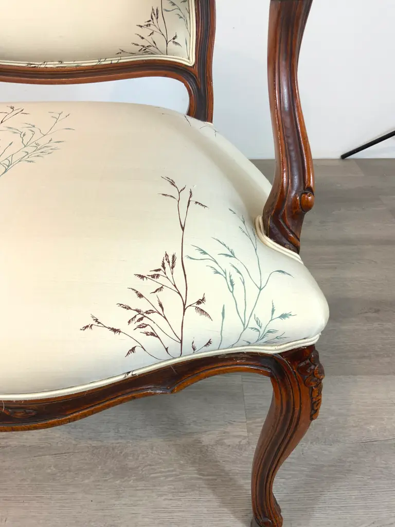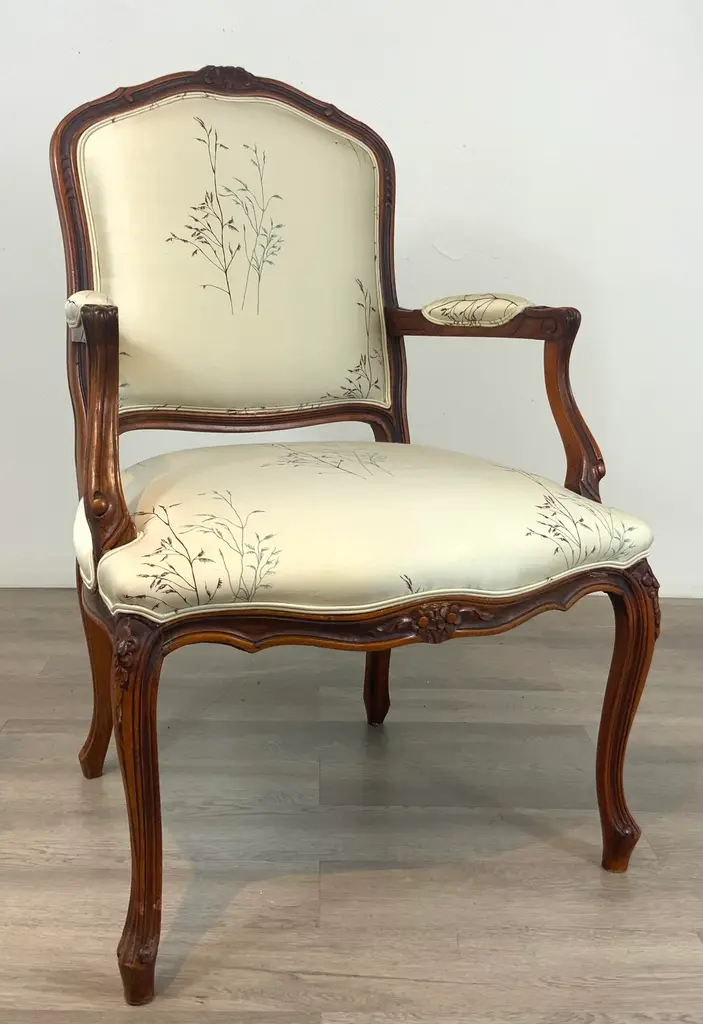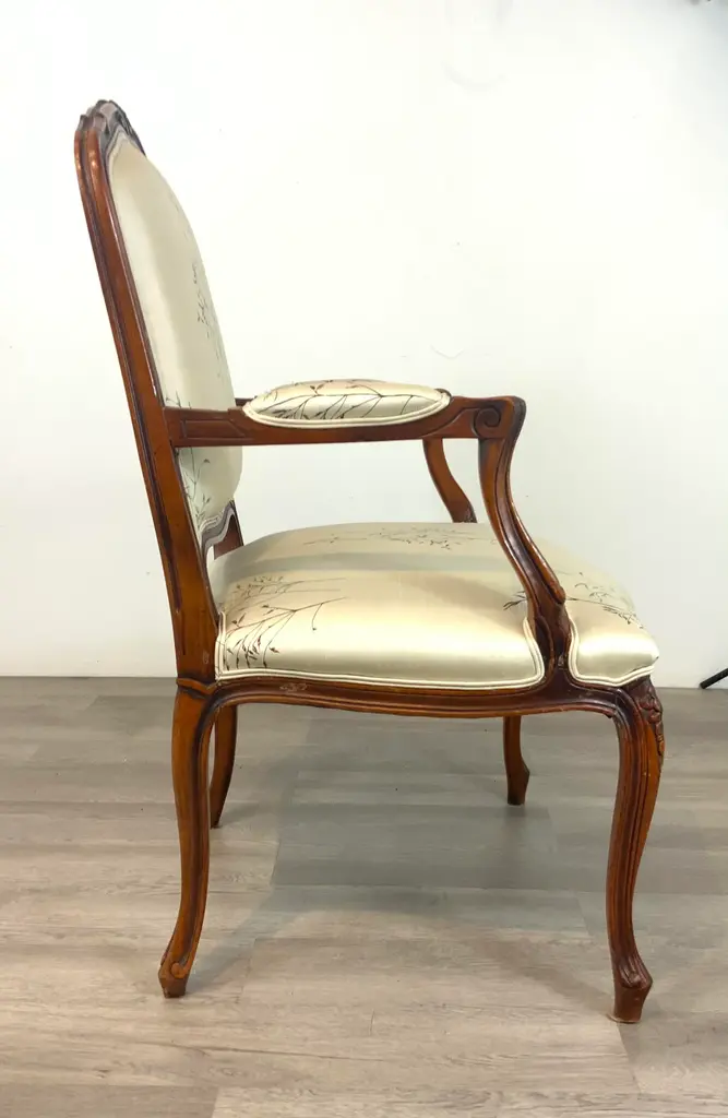 Vintage French Embroidered Silk Arm Chair