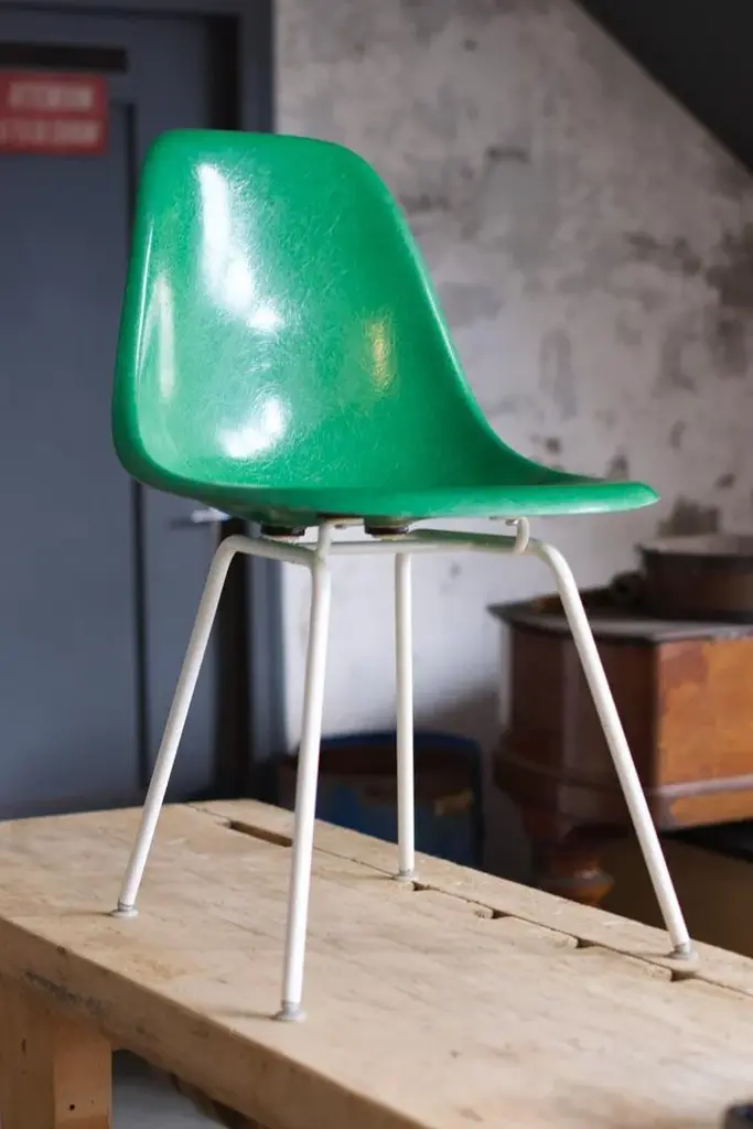 Designer Charles and Ray Eames by publisher Herman Miller in the late 1960s, original hull in fiberglass woven in color "Kelly Green" on an original white H color base. X60 Chair Available - in very good general condition / in accordance with their age - cleaned one by one / in their original patina - no significant crack or degradation This piece has an attribution mark, I am sure that it is completely authentic and take full responsibility for any authenticity issues arising from misattribution