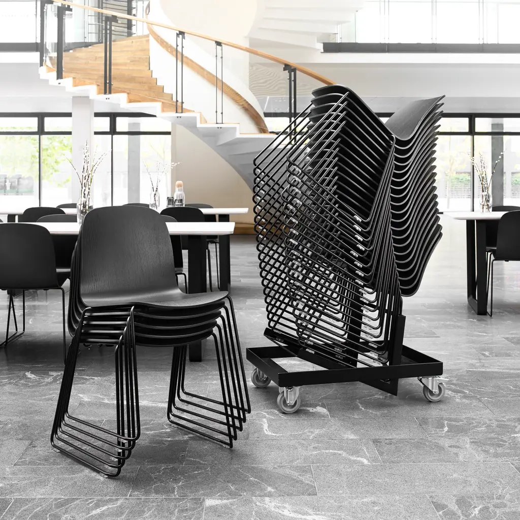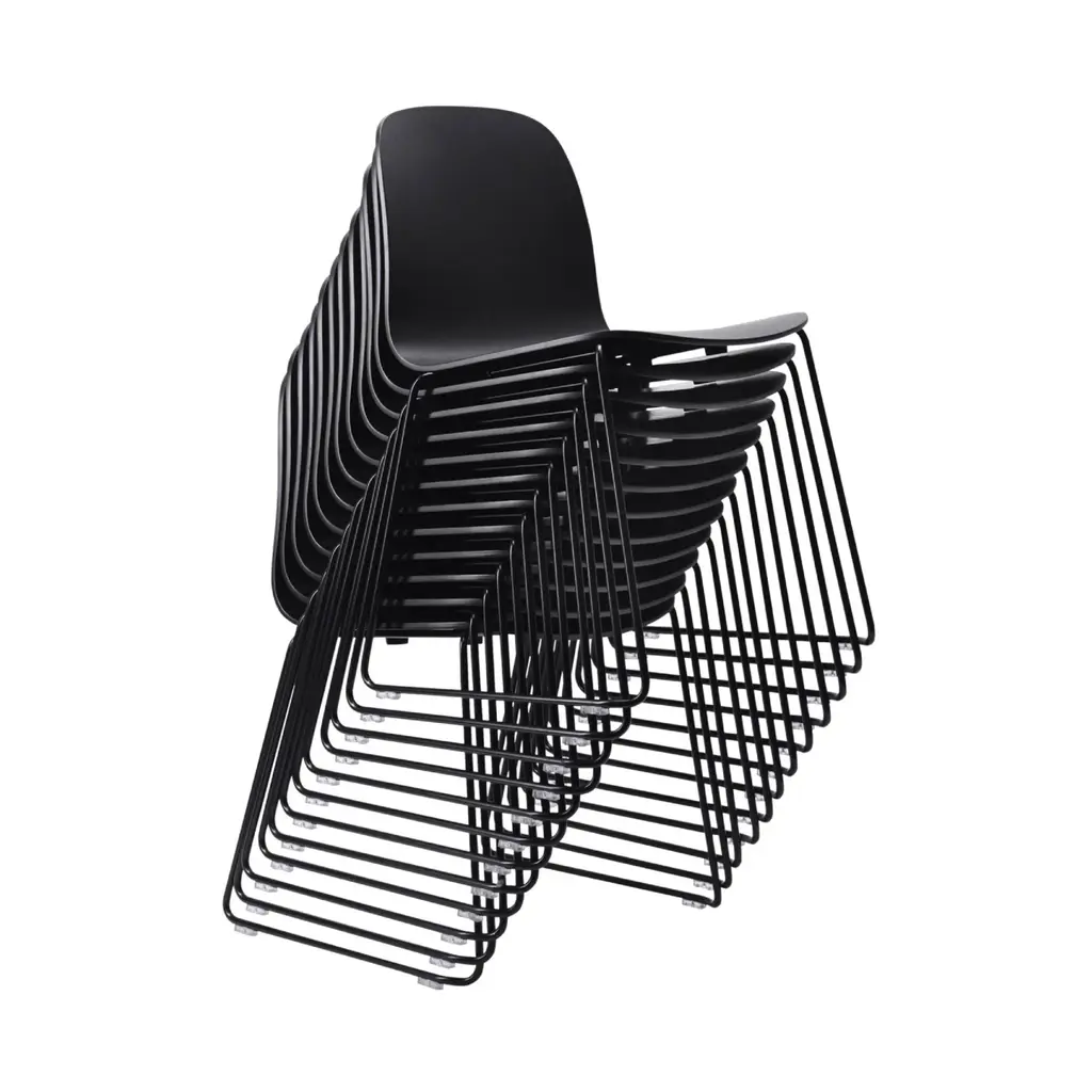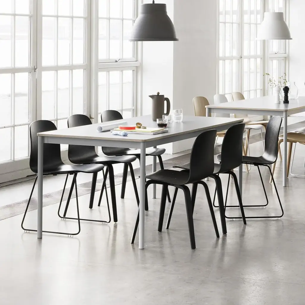 As the Sled Base version shows, Finnish designer Mika Tolvanen's original Visu Chair for Muuto has become a template for an expansive line of iconic seating. And to the designer, that's as it should be: "I wanted Visu to have an unobtrusive and timeless nature that is familiar but never boring and without sacrificing function or ergonomics. Designing a family of chairs, visually related but for different functions, was an iterative and thorough process lasting nearly 2 years. In the end, I think every detail is exactly as it is supposed to be." Those details are especially persuasive in this stackable sled edition, with a choice of natural finish oak veneer with stainless steel legs or a range of colors with steel legs powder-coat finished to match.