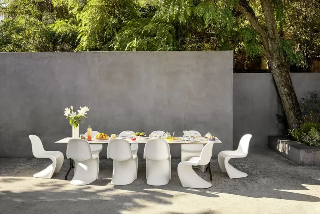 The Panton Chair is a classic in the history of furniture design. Conceived by Verner Panton in 1960, the chair was developed for serial production in collaboration with Vitra (1967). It was the fi rst chair to be manufactured completely out of plastic in one single piece. Since its introduction to the market, it has advanced through several production phases. Only since 1999 has it been possible to produce the chair in accordance with its original conception – out of durable, dyedthrough plastic with a lustrous matte finish.The comfort of this chair results from the combination of a cantilever structure with an anthropomorphic shape and a slightly flexible material. It can be used individually or in groups and is suited for indoor and outdoor environments. The Panton Chair has received numerous international design awards and is represented in the collections of many prominent museums. Its expressive shape has made it an icon of the twentieth century.- Material: dyed-through polypropylene. Matte finish. Also suited for outdoor use.- Note: special additives retard the fading of colours due to UV radiation. However, if the chair is exposed to sunlight for prolonged periods, the colour may change over time. We recommend limited exposure to sunlight.