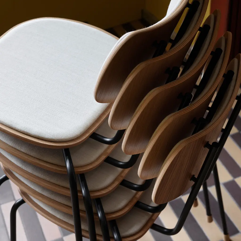Carl Hansen & Søn adds an upholstered version of Danish architect Vilhelm Lauritzen’s signature stackable chair, created in 1956 for Copenhagen’s iconic Vega concert center. Often referred to as the “Pioneer of Danish Functionalism,†Lauritzen shaped a comfortably curved backrest and seat in FSC-certified solid oak with a range of finish options, fixed on a black powder-coat steel base. Custom-clad in fabric or leather, VLA26P endures via a timeless design and fine craftsmanship.