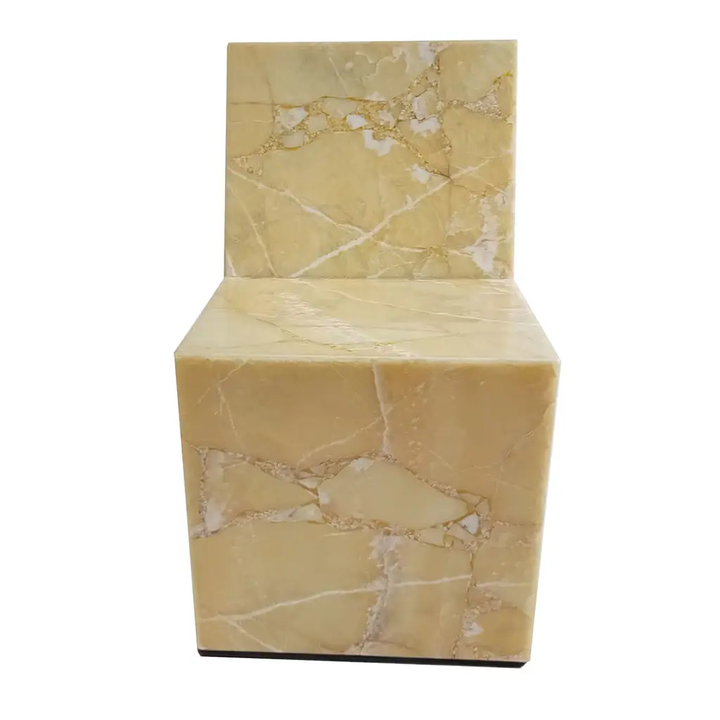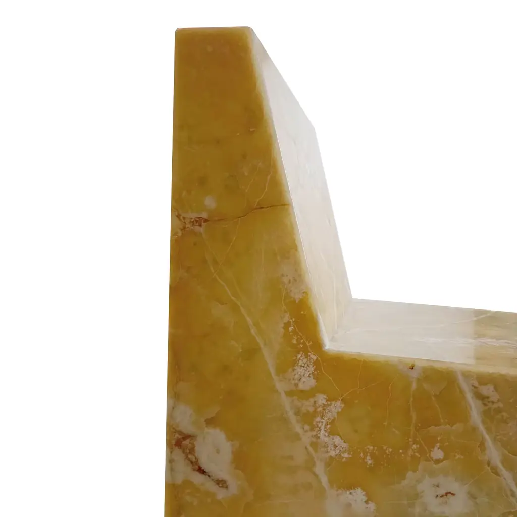 The sculpted profile of this chair lends it an unadorned allure perfect to complement exclusive interiors or outdoor contexts such as terraces or roof gardens. Its deceptively heavy body is crafted of lightweight marble that blends into the onyx layer, allowing for elegant design and easy handling. Other finishes are available upon request, please inquire with the Concierge. This item is currently on display at Artemest Galleria in NY on the occasion of the exhibition MARMO.