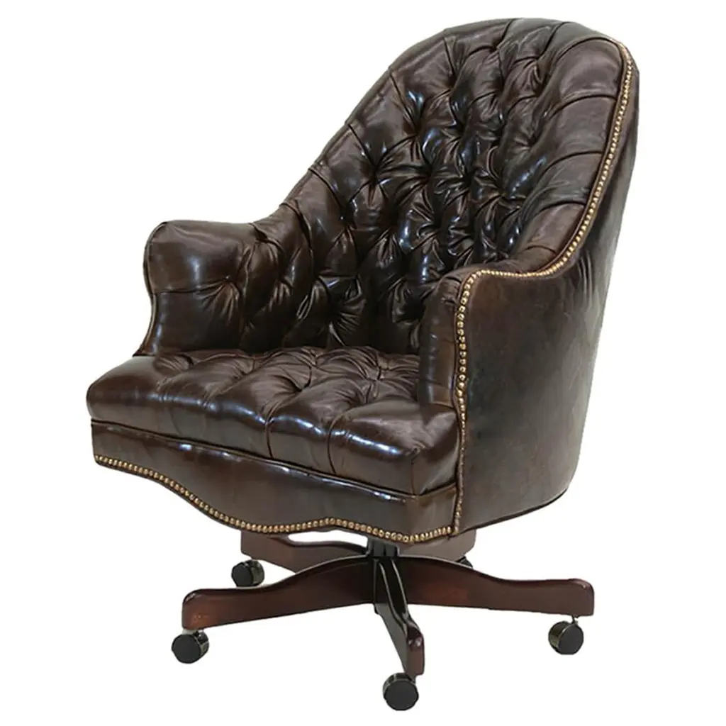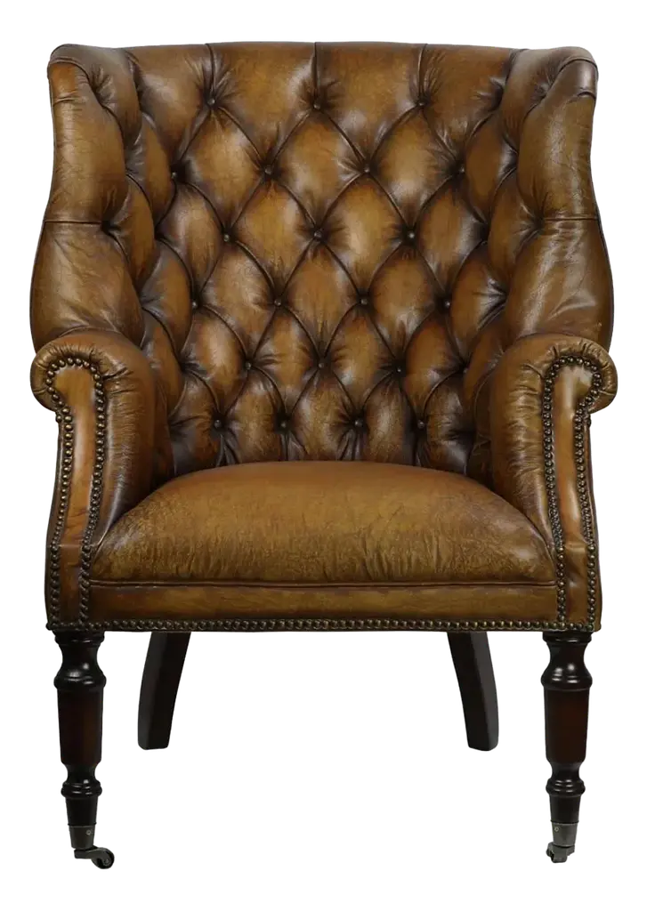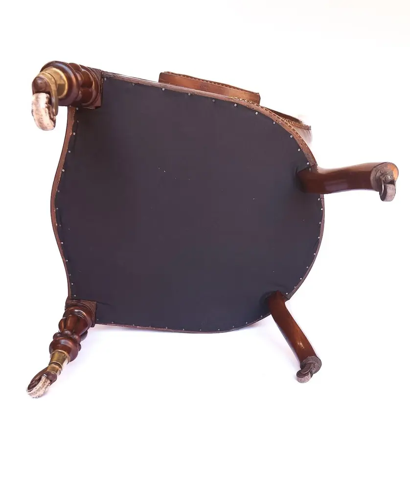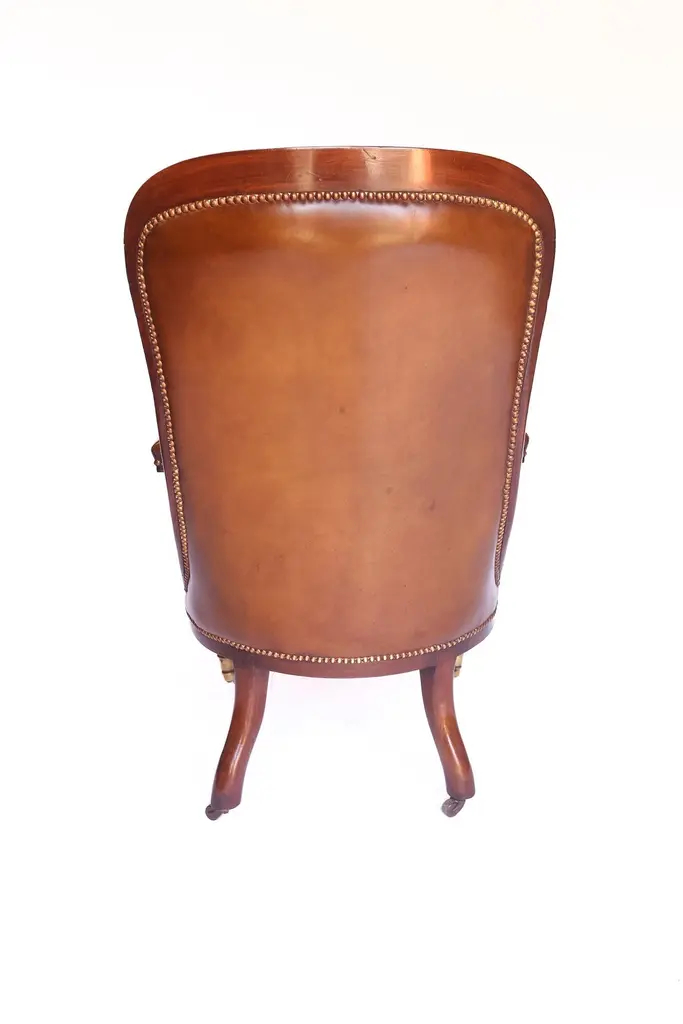 W1v Mahogany & Carved Leather Library Chair