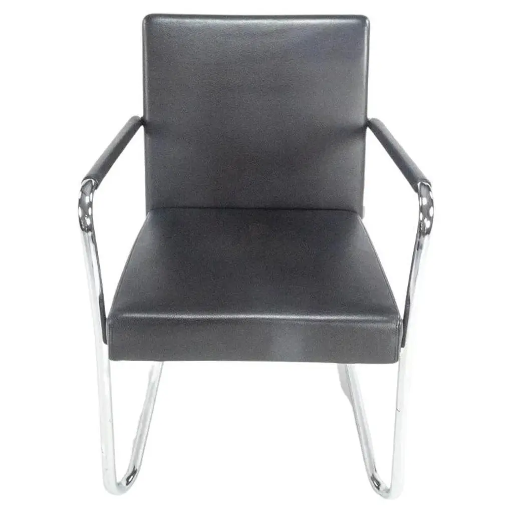Listed for sale is a single (chairs are sold individually but multiple chairs are available) ""George"" armchair, designed by EOOS of Vienna and produced by Walter Knoll. In the US, Walter Knoll is somewhat less known than in Europe. It is the renowned design brand founded by Hans Knoll's family in 1865. As some may note, Hans and Florence Knoll founded Knoll in the US, but Walter Knoll had existed for decades prior. To this day, Walter Knoll produces some of the most high quality modernist furnishings. This includes works by Kastholm & Fabricius, Norman Foster, and many others. These particular chairs use the language of cantilevered steel tubular chairs from the bauhaus and reinterpret them in a modern context. The chairs are upholstered in beautiful full grain leather and have nicely wrapped leather armrests. They also stack, making them quite convenient as well. The George chair measures 34 inches tall by 23.5 inches wide and 20 inches deep. Regarding condition, the chairs were produced circa mid 2010's. Condition overall appears excellent with some signs of wear from use. The leather feels terrific and chrome still maintains a great shine. The chairs are labelled and guaranteed as authentic.