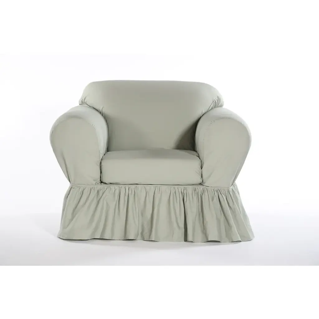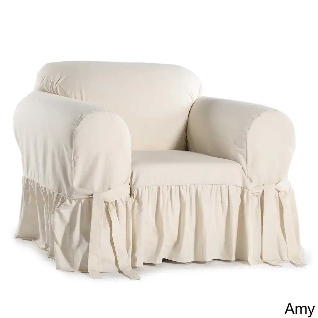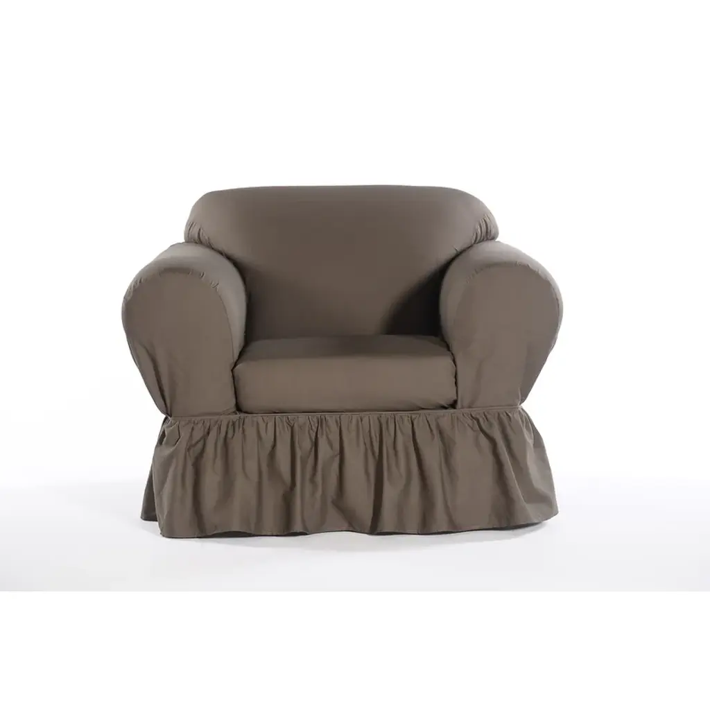 Transform your chair in an instant with this 2-piece ruffled slipcover. Made from high-quality 100% cotton, this slipcover is both sophisticated and durable. The cushion cover and body cover fit perfectly, and a fluffy ruffle adds an extra touch of elegance. This machine-washable cover is perfect for chairs 30"-42" wide from outside arm to outside arm.Features: