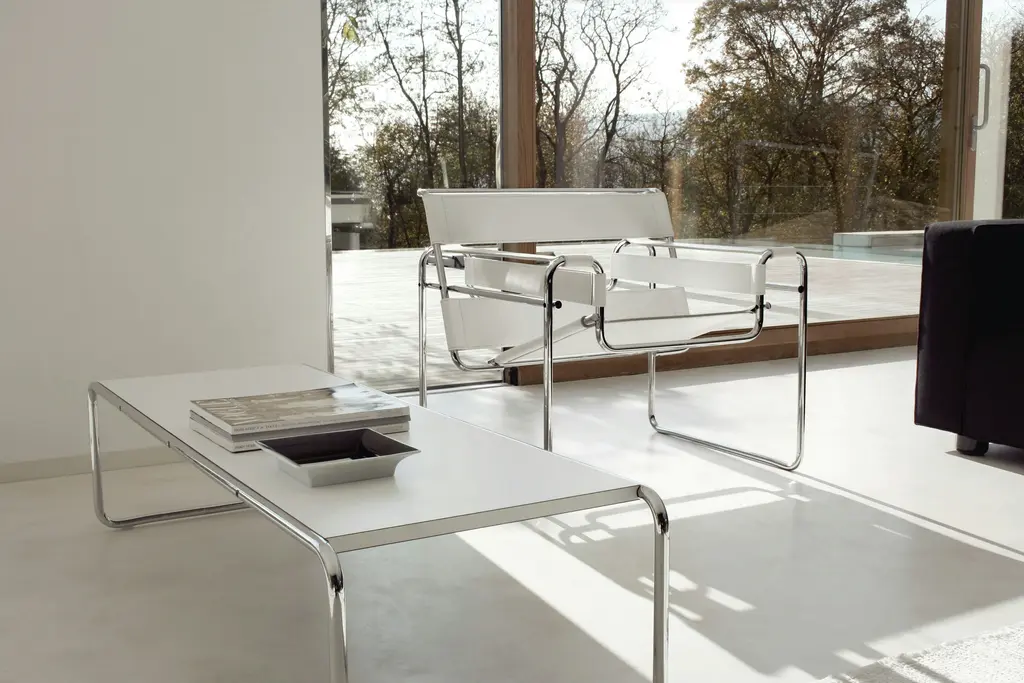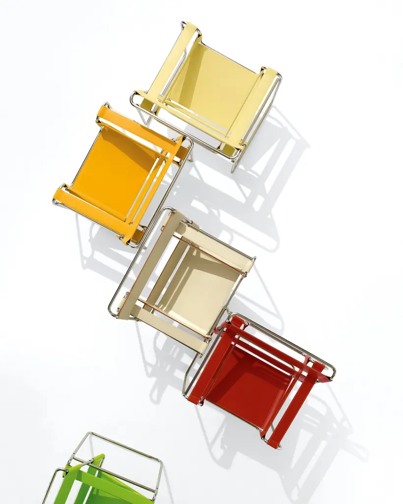 The iconic Wassily Chair is constructed of leather or canvas straps stretched across a tubular steel frame—originally inspired by the bends in a bicycle. It was the first chair of its kind in 1925, and it remains a celebrated symbol of modernism today.In 1925, Marcel Breuer was an apprentice at the Bauhaus when he reduced the classic club chair to its elemental lines and forever altered the future of furniture design. He was inspired to work with tubular steel after hearing the material is “bent like macaroni” to make bicycle frames. “I was very much engaged in the transparency of the form,” said Breuer, who, upon recognizing the potential of this lightweight, sturdy, malleable material, knew he could create the furniture he envisioned. An early prototype intrigued his associate Wassily Kandisky, for whom the chair is now named.